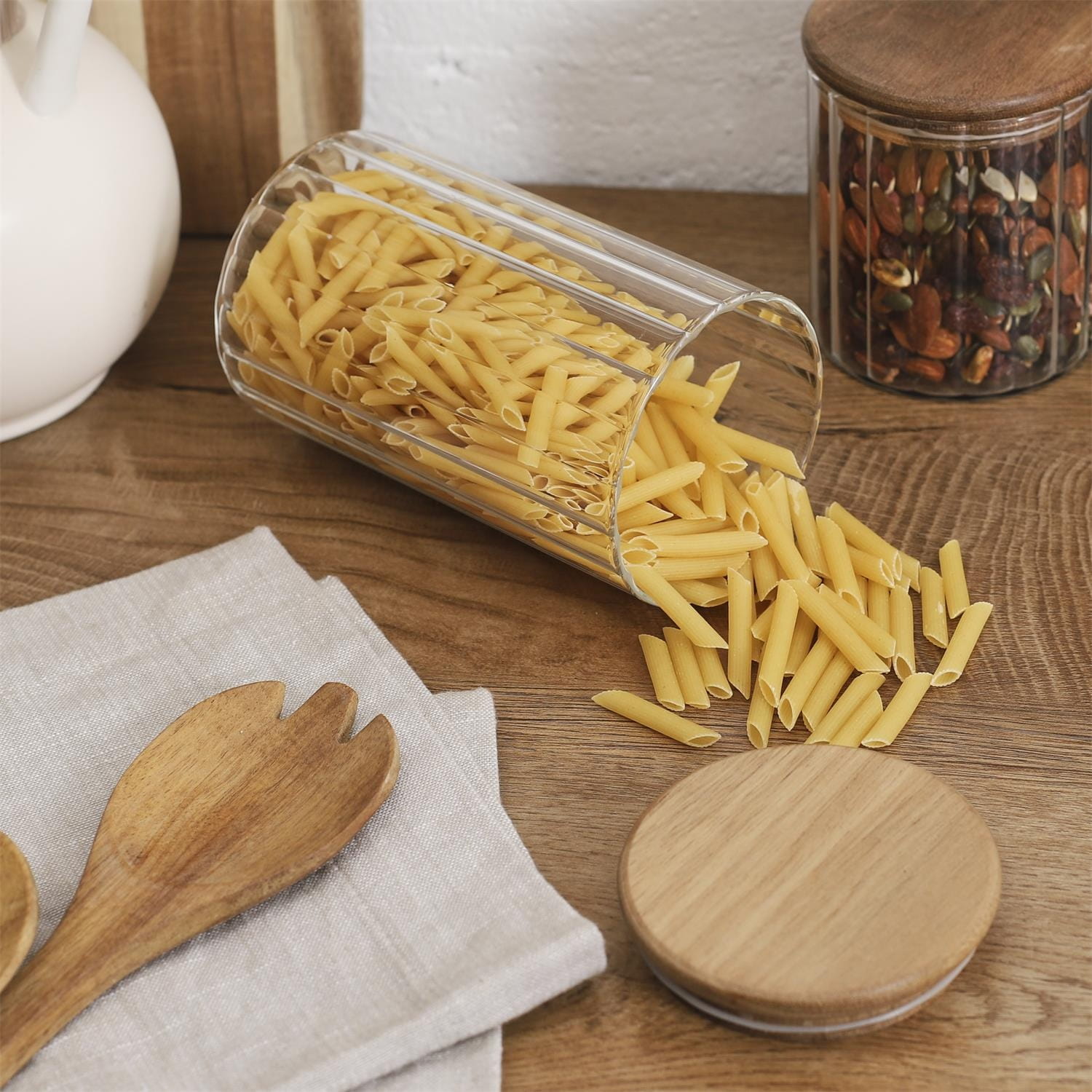 Pojemnik z dekoracyjnymi żłobieniami prezentuje się elegancko na kuchennej półce, a dzięki szczelnemu zamknięciu utrzymuje świeżość zawartości. Doskonały do przechowywania kawy, cukru, orzechów, przypraw, a także akcesoriów łazienkowych lub biżuterii.