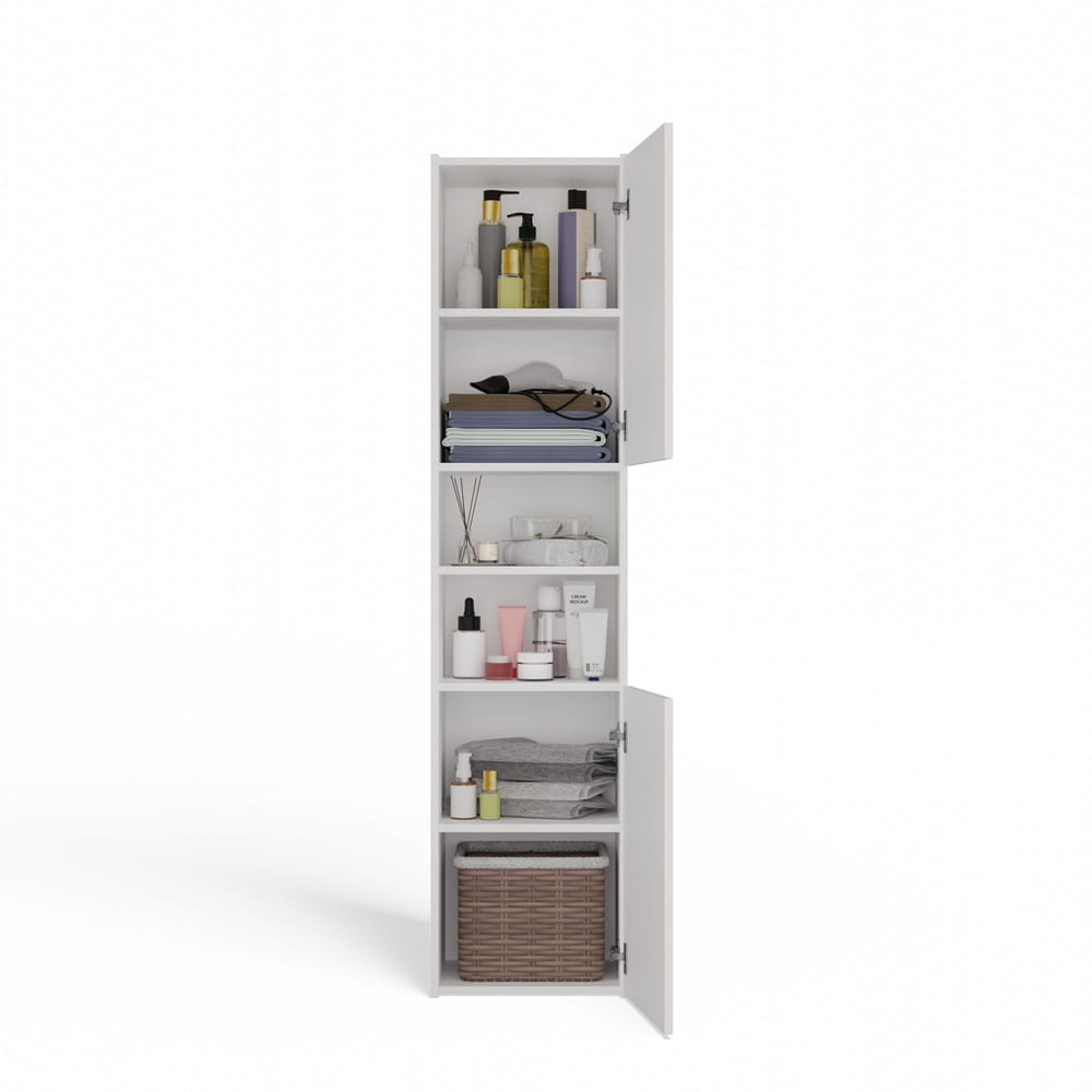 Dzięki kompaktowym wymiarom skutecznie organizuje przestrzeń, oferując miejsce na kosmetyki, ręczniki i inne akcesoria, nie zajmując przy tym dużo miejsca.