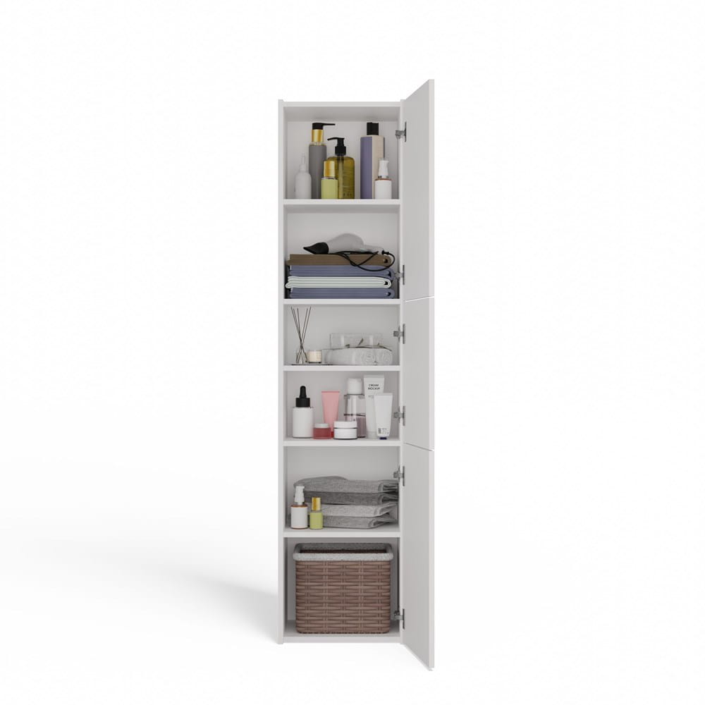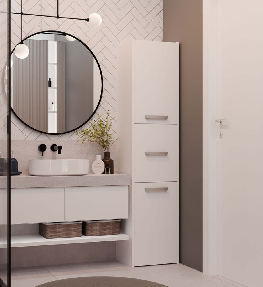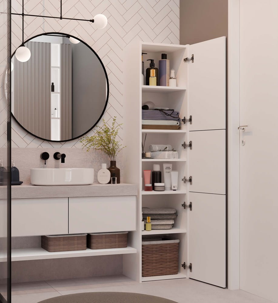 ✔ Przemyślana konstrukcja – pojemne półki pomagają uporządkować kosmetyki, detergenty i akcesoria łazienkowe.