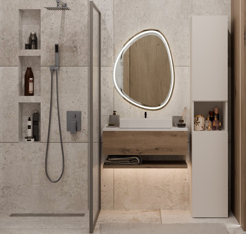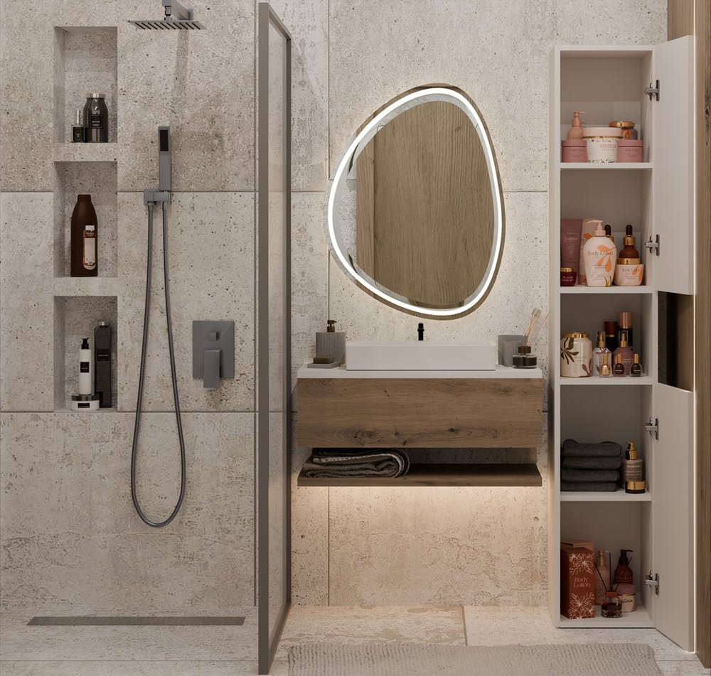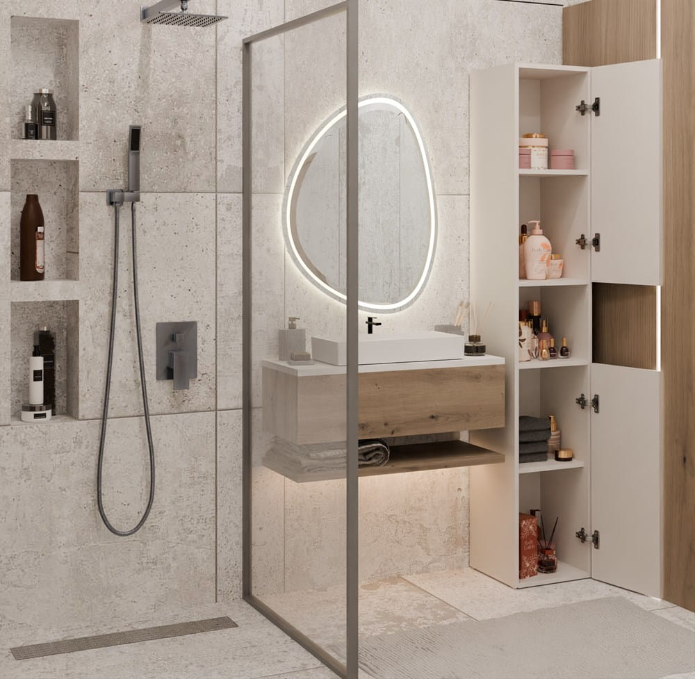 ✔ 5 pojemnych półek – idealne na kosmetyki, ręczniki i inne niezbędne przedmioty.