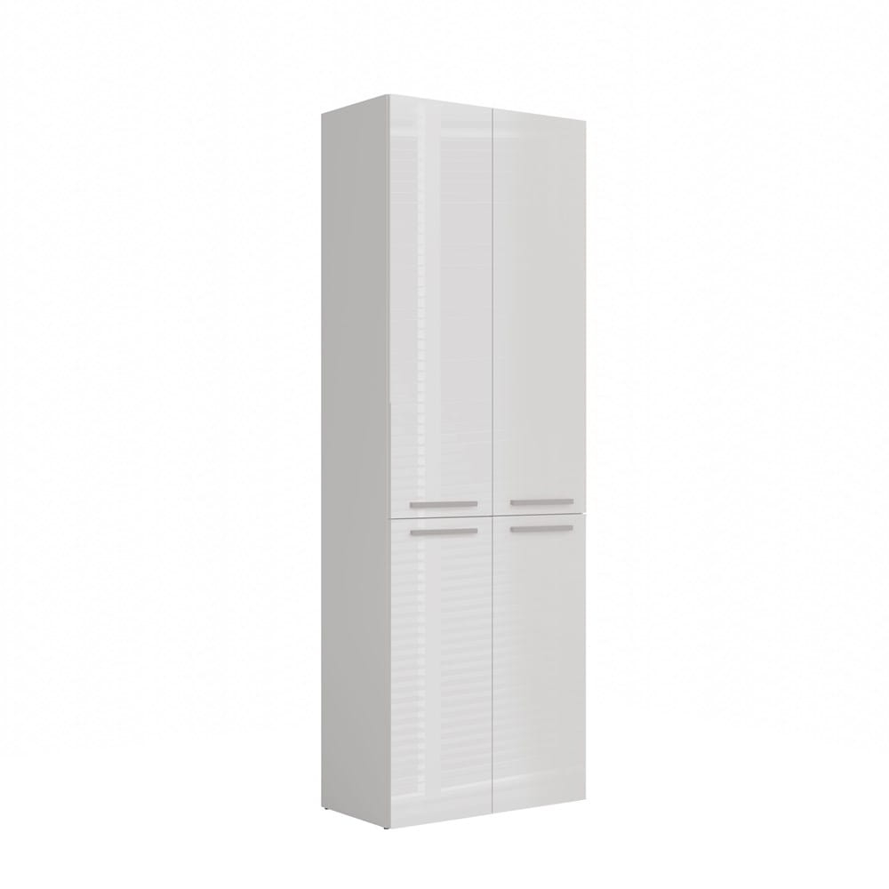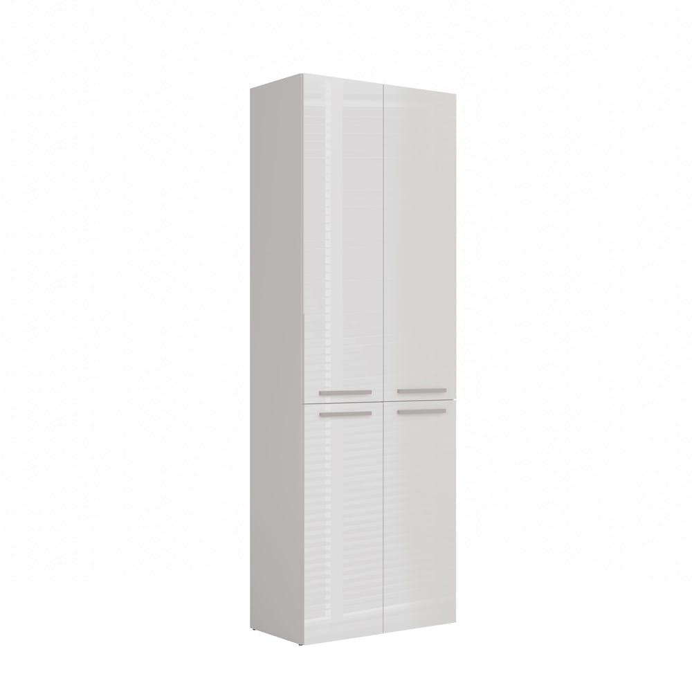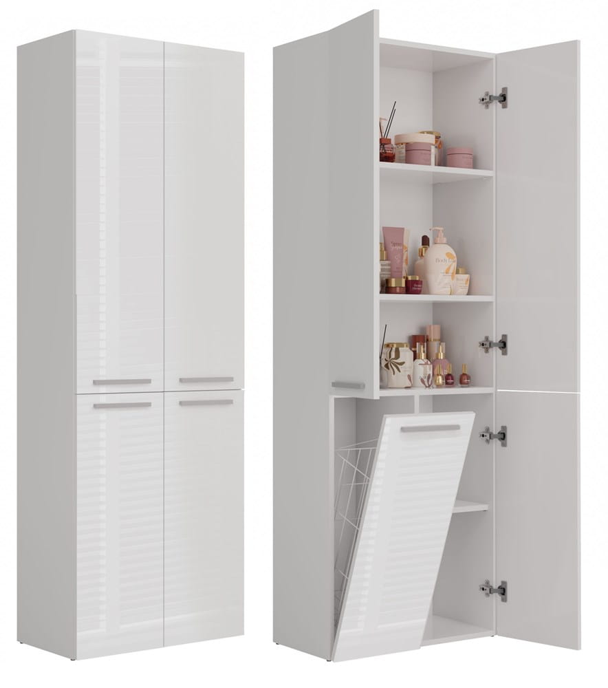 Słupek łazienkowy z długimi drzwiami oraz koszem, biały połysk Nel