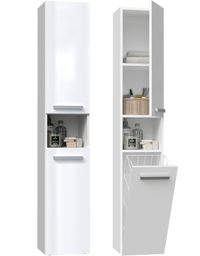 Słupek łazienkowy z koszem, biały połysk Nel III