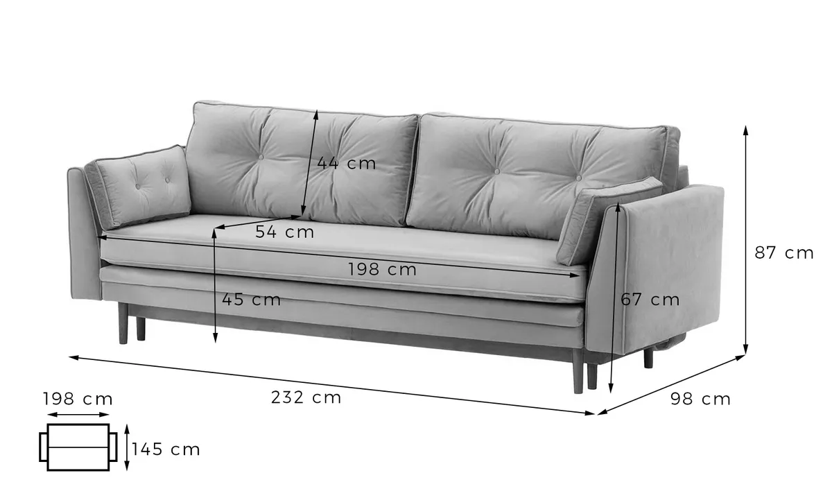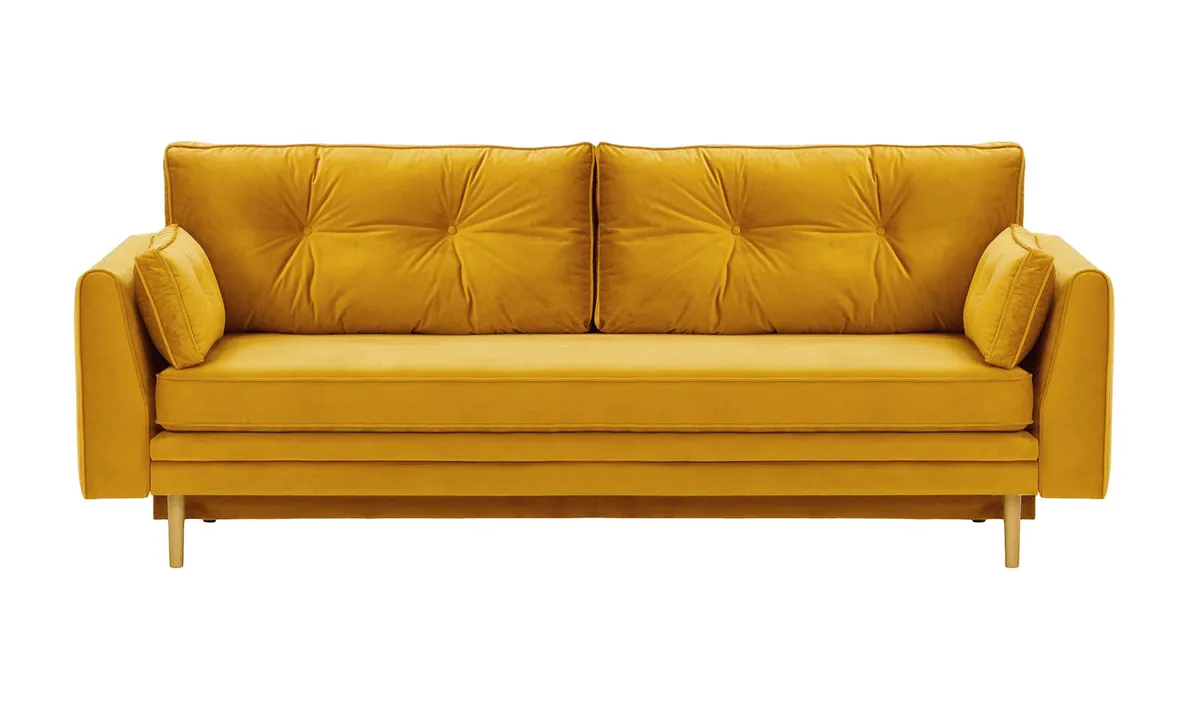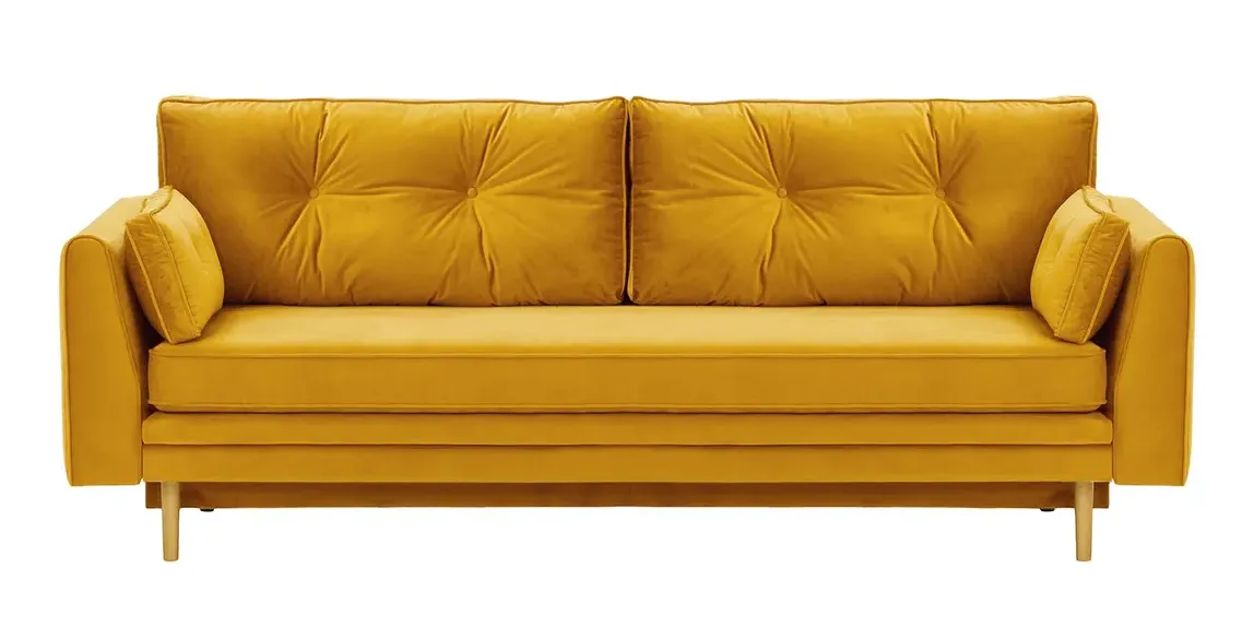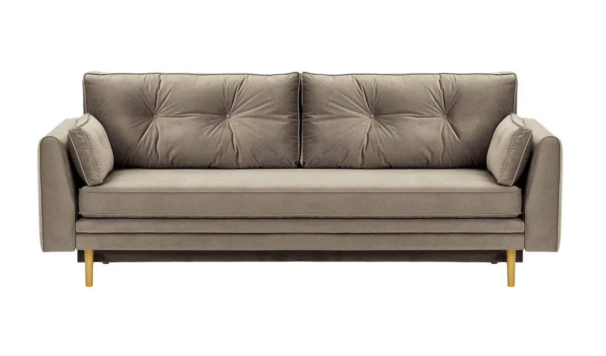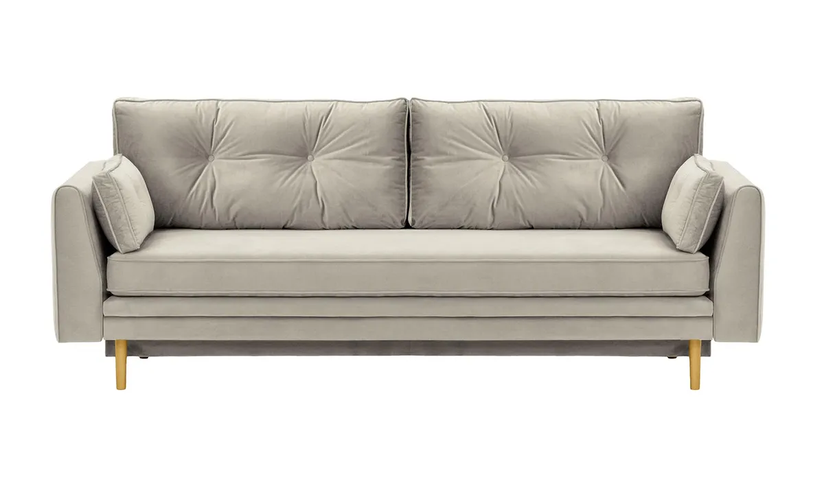 Model Magnus wyposażono w cichy i łatwy w obsłudze system rozkładania, który pozwala szybko przekształcić sofę w wygodne łóżko dla gości. Dodatkowym atutem jest praktyczny pojemnik na pościel – idealny do przechowywania koca, kołdry czy poduszek. Sofa unosi się na smukłych, drewnianych nogach, które nadają jej lekkości oraz ułatwiają przesuwanie i utrzymanie porządku pod meblem.