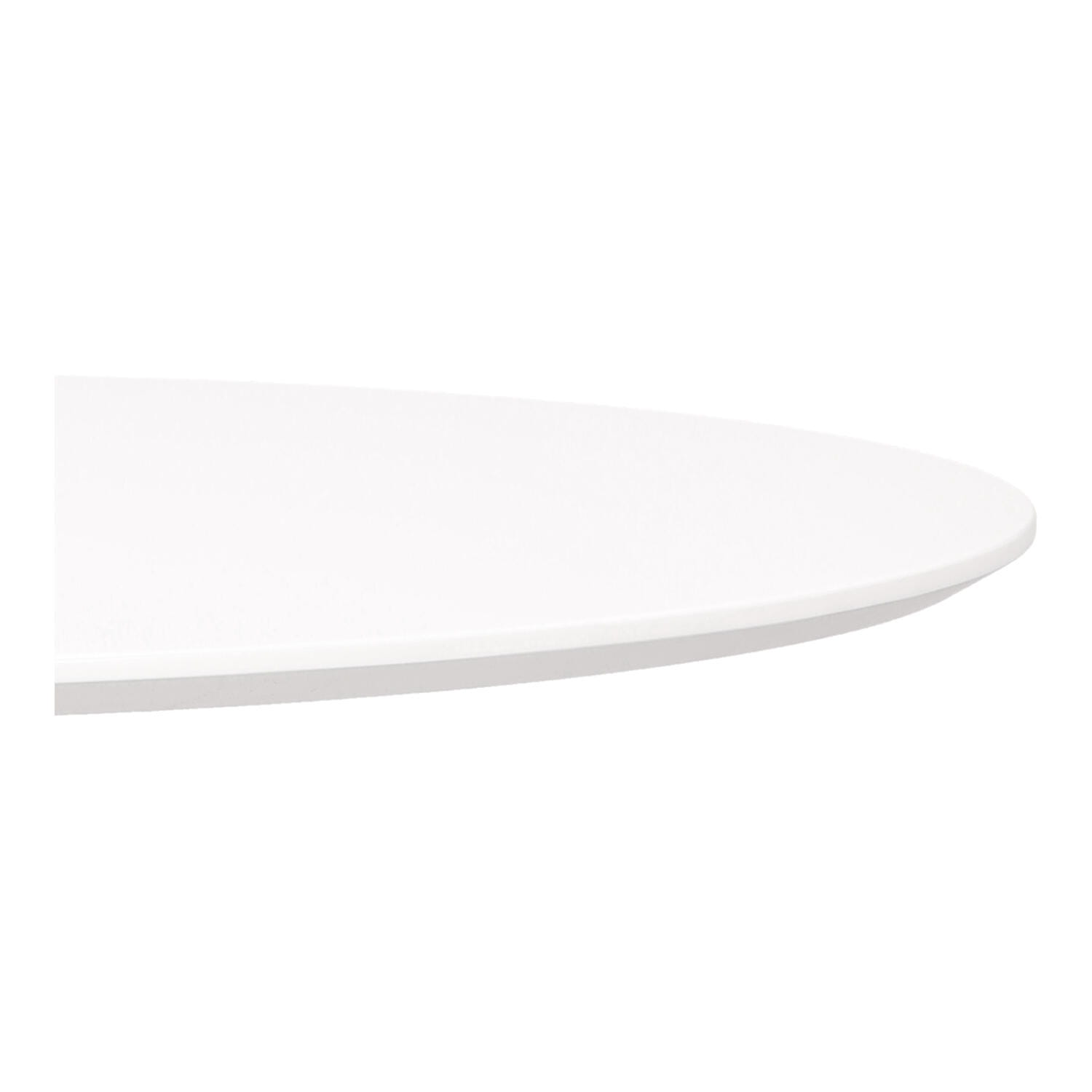 Okrągły blat o średnicy 80 cm wykonany z wytrzymałej płyty MDF, pokrytej gładką okleiną, jest odporny na wysokie temperatury, co chroni go przed uszkodzeniami.
