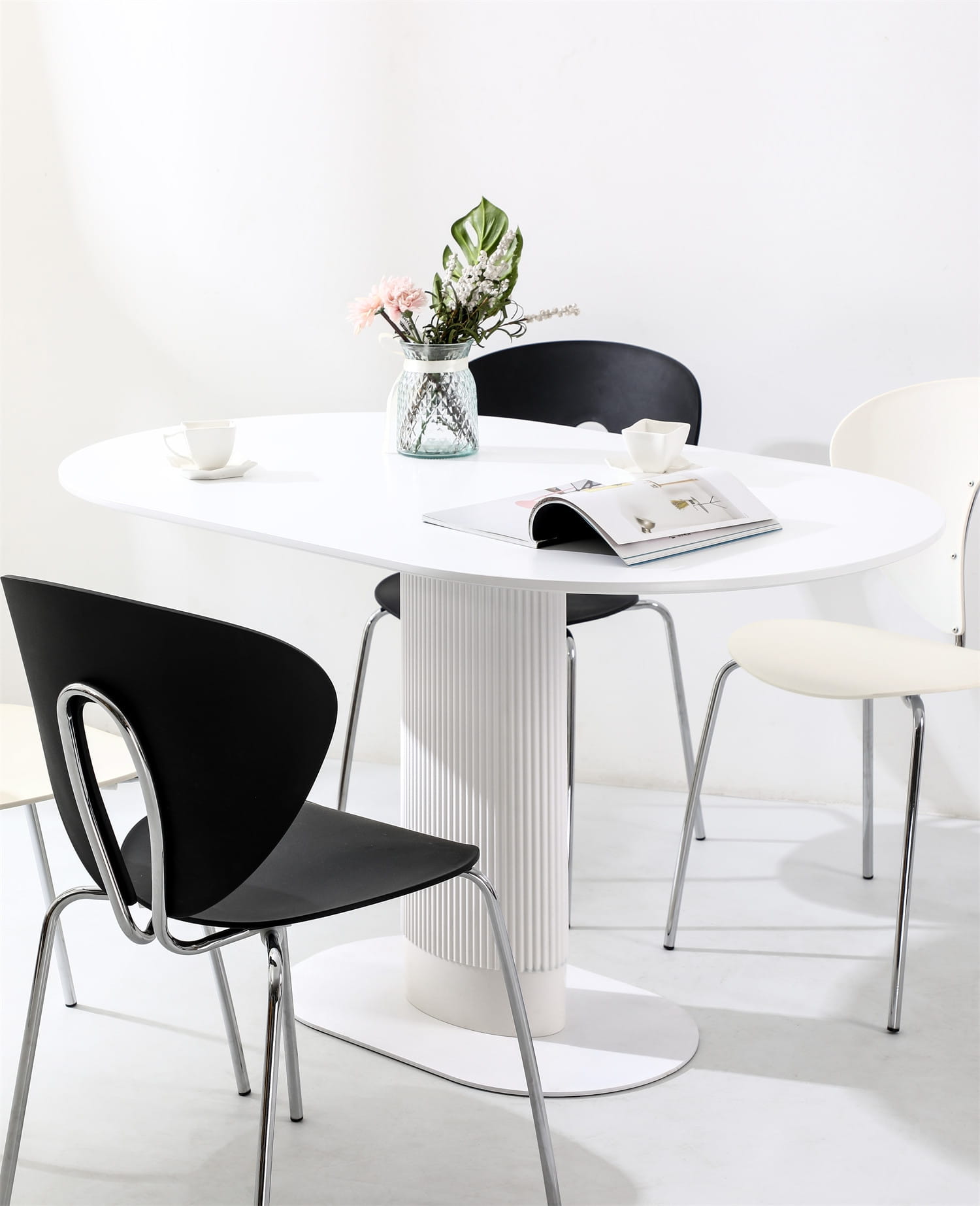 Owalny blat o szerokości 120cm i głębokości 70cm jest idealną powierzchnią dla 5-6 osób.