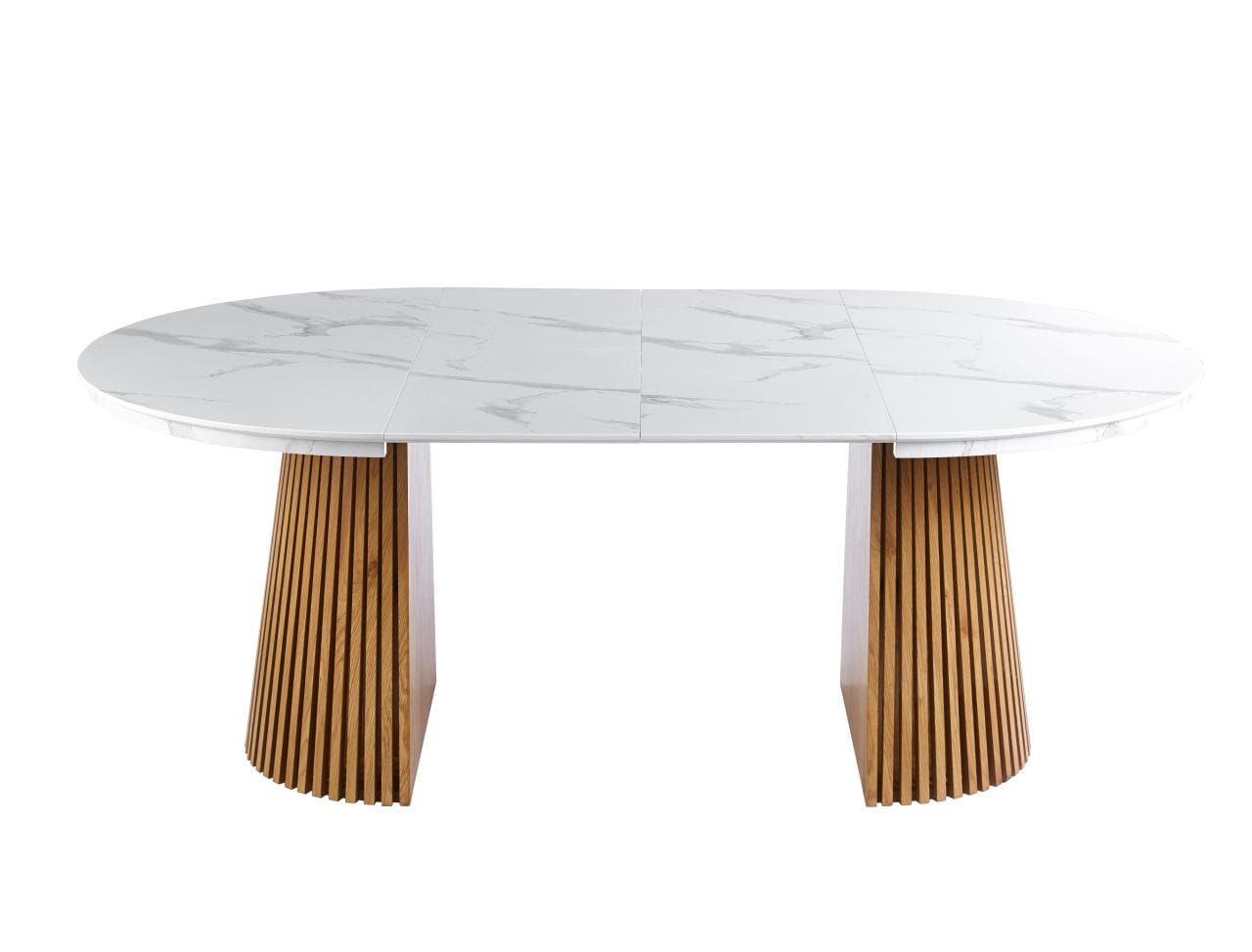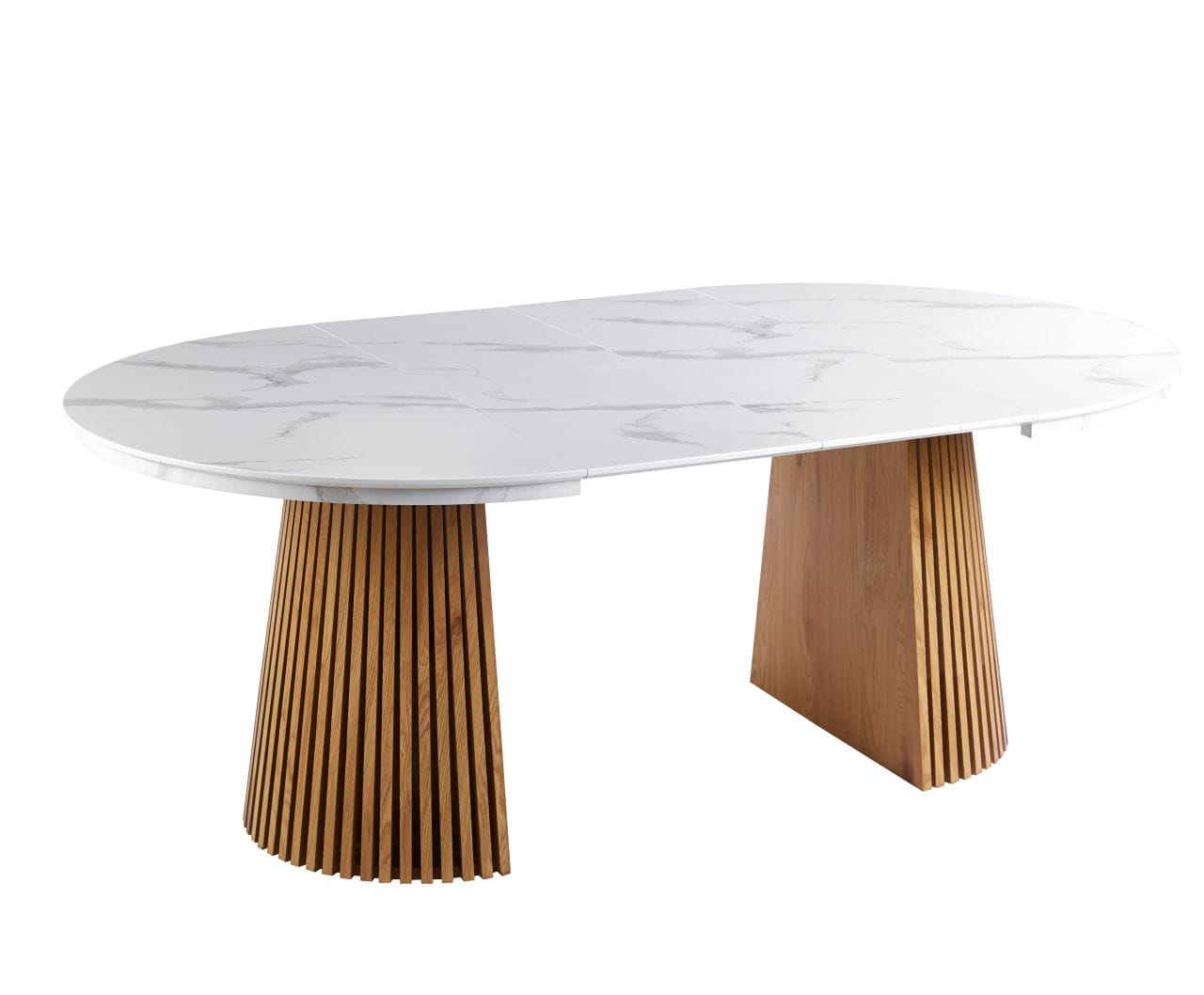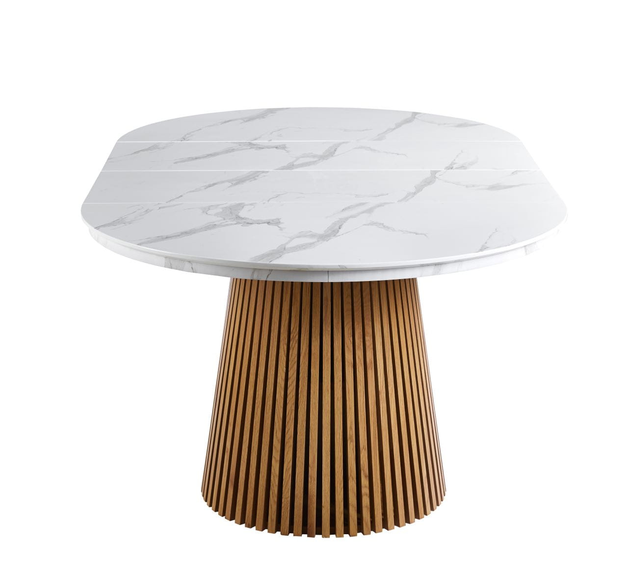 Stół okrągły rozkładany Fenix 120 cm biały marmur/dąb naturalny