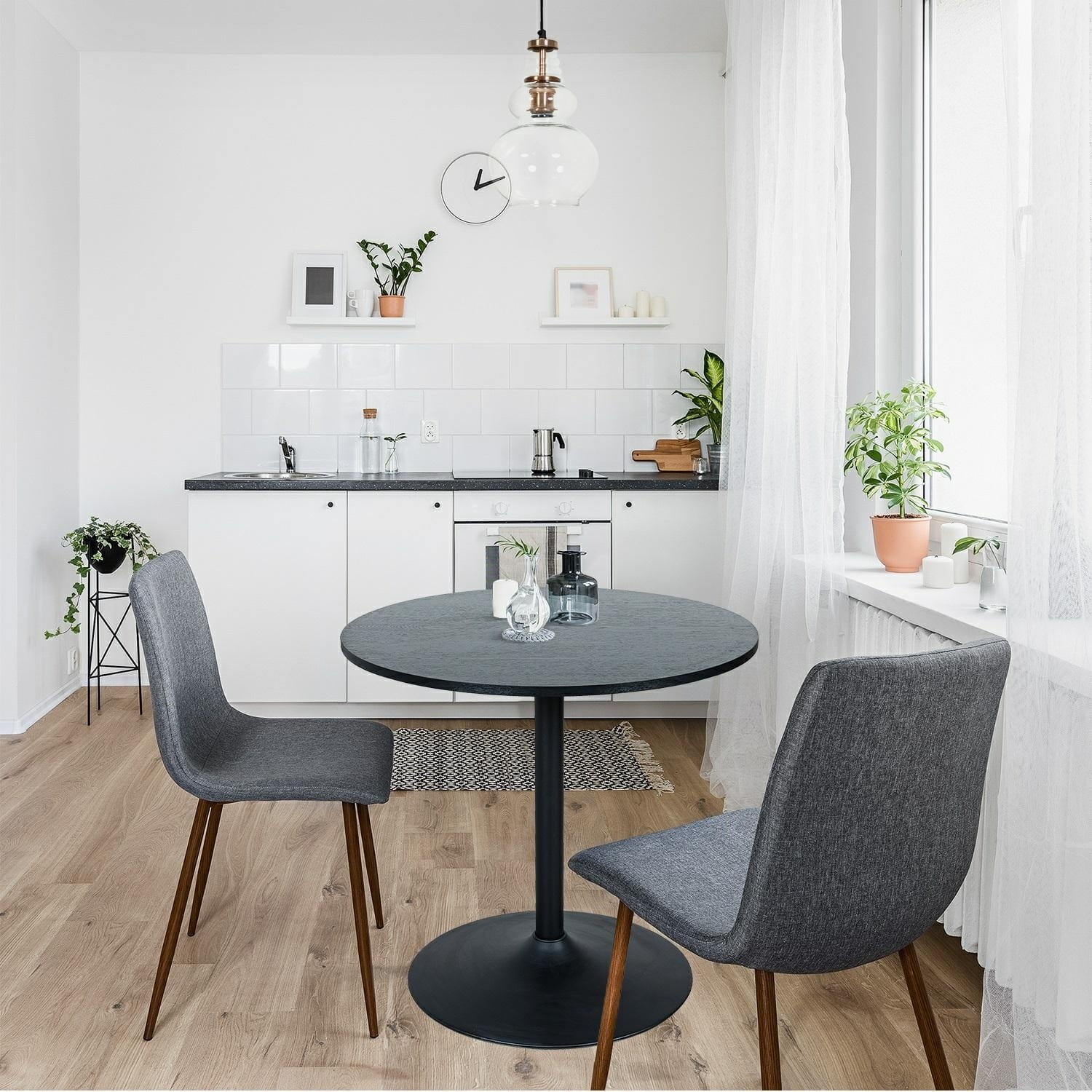 Stołowi towarzyszy okrągły blat o średnicy 80 cm, a jego minimalistyczna budowa gwarantuje uniwersalność w aranżacji przestrzeni.