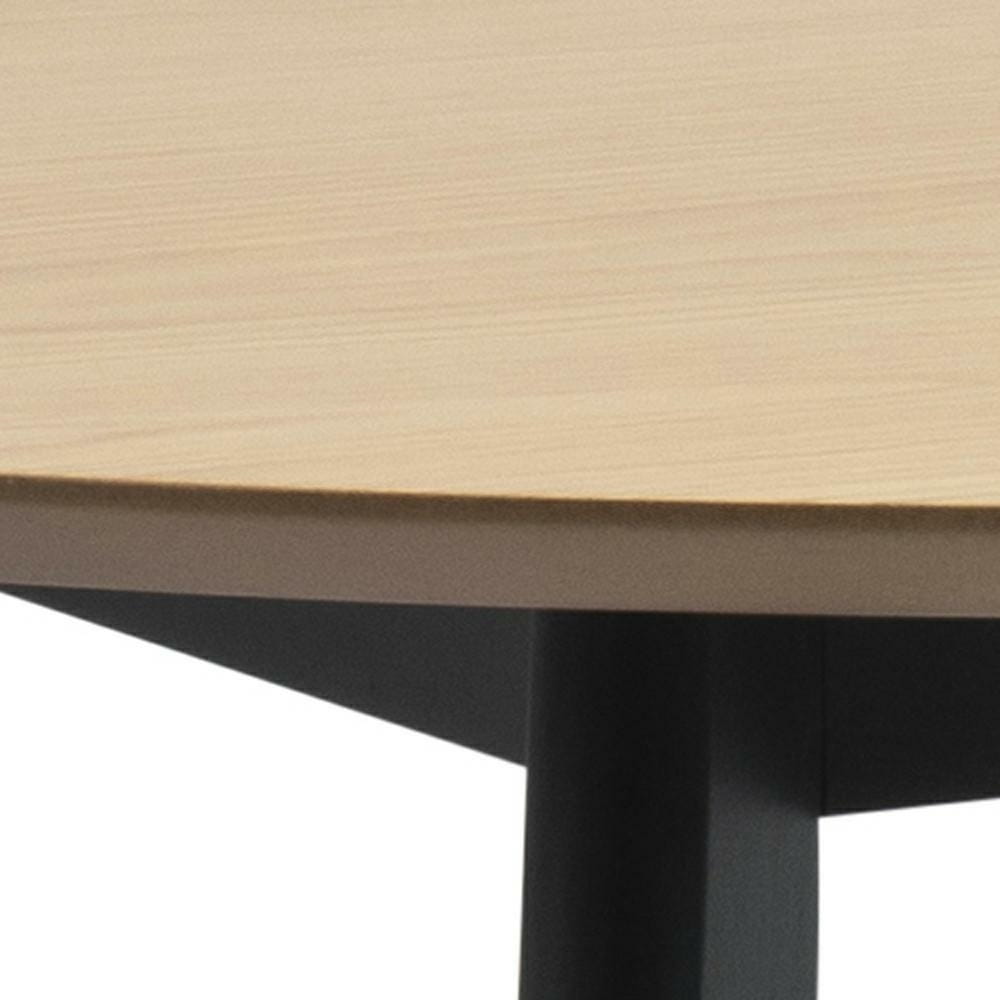 Blat fornirowany drewnem dębowym w naturalnej kolorystyce o wykończeniu półmatowym dopełniony został podstawą wykonaną z drewna kauczukowego malowanego na kolor naturalny.