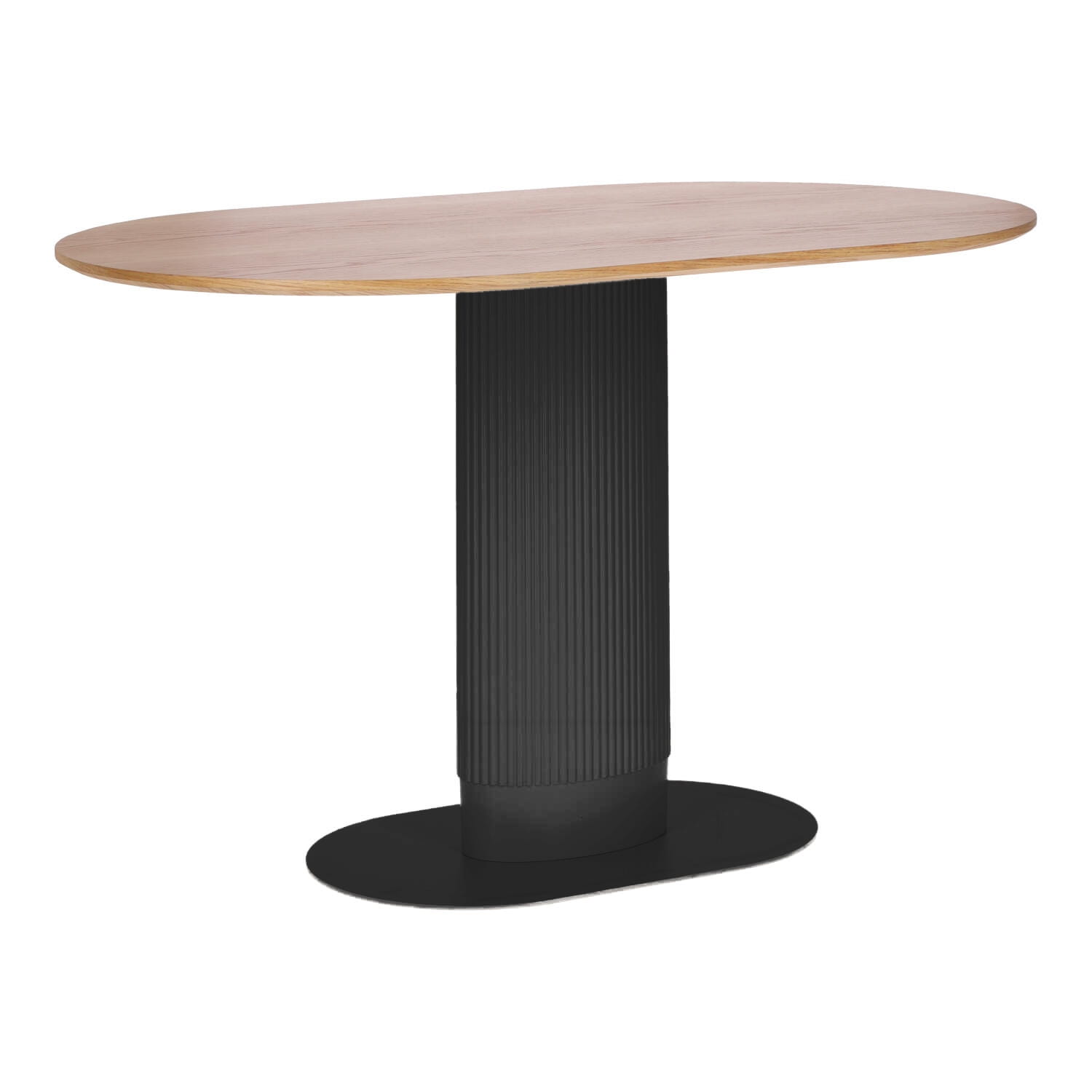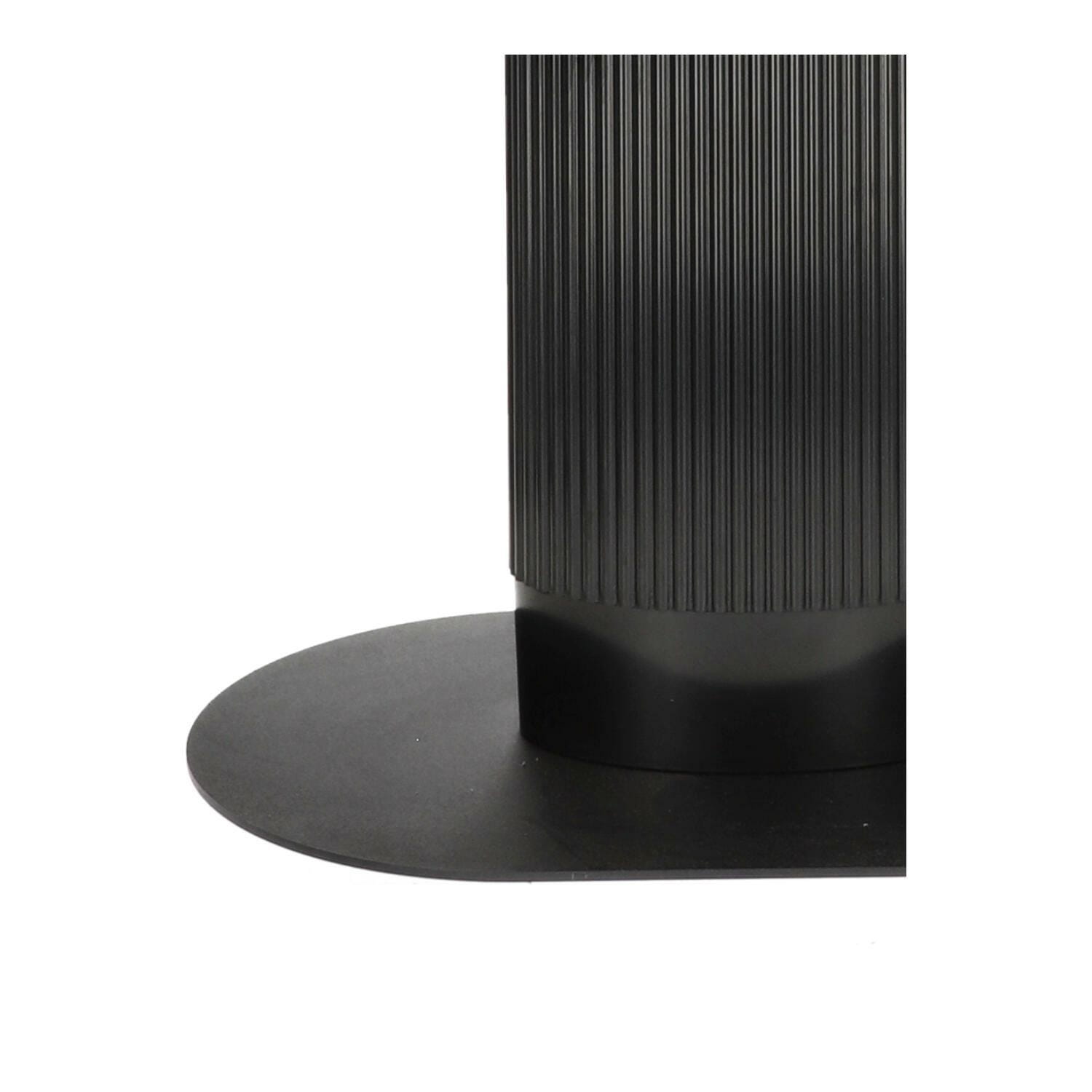 Stylowa konstrukcja – pojedyncza, solidna noga z metalu, ozdobiona pionowymi lamelami z tworzywa sztucznego, nadaje stołowi unikatowego charakteru.