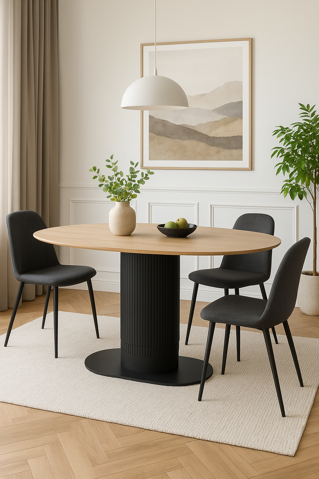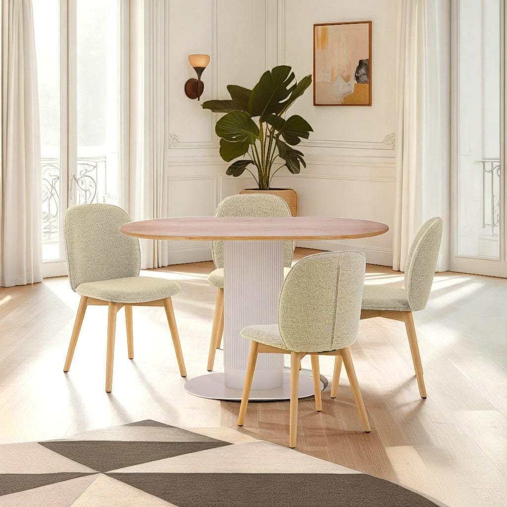 Jego owalny blat o wymiarach 120 x 70 cm zapewnia komfortową przestrzeń dla 5–6 osób, idealną do wspólnych posiłków i spotkań.