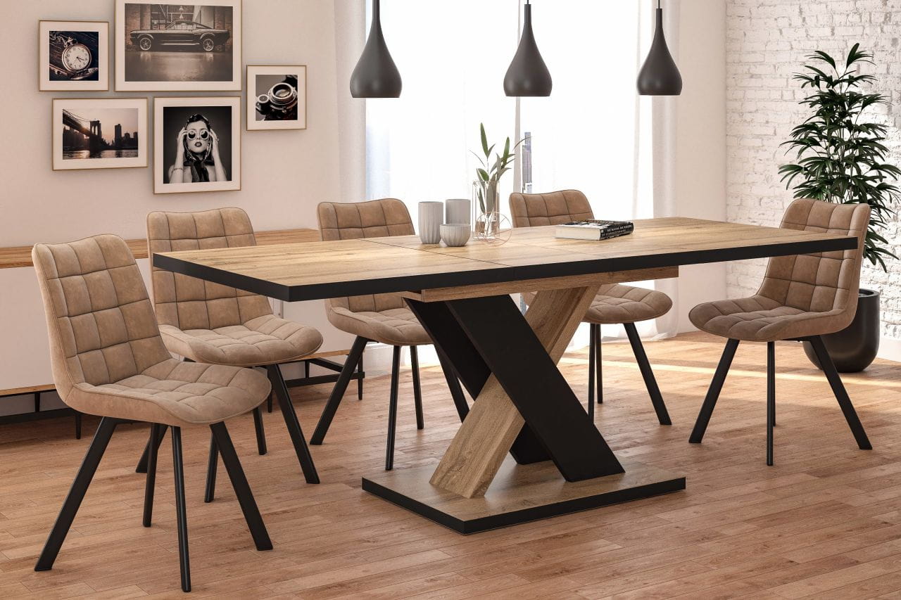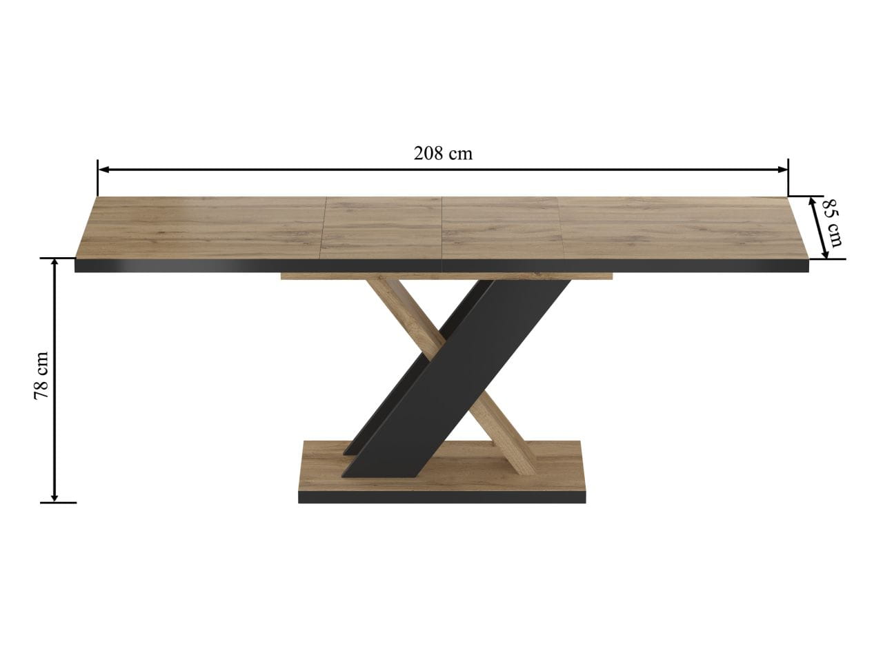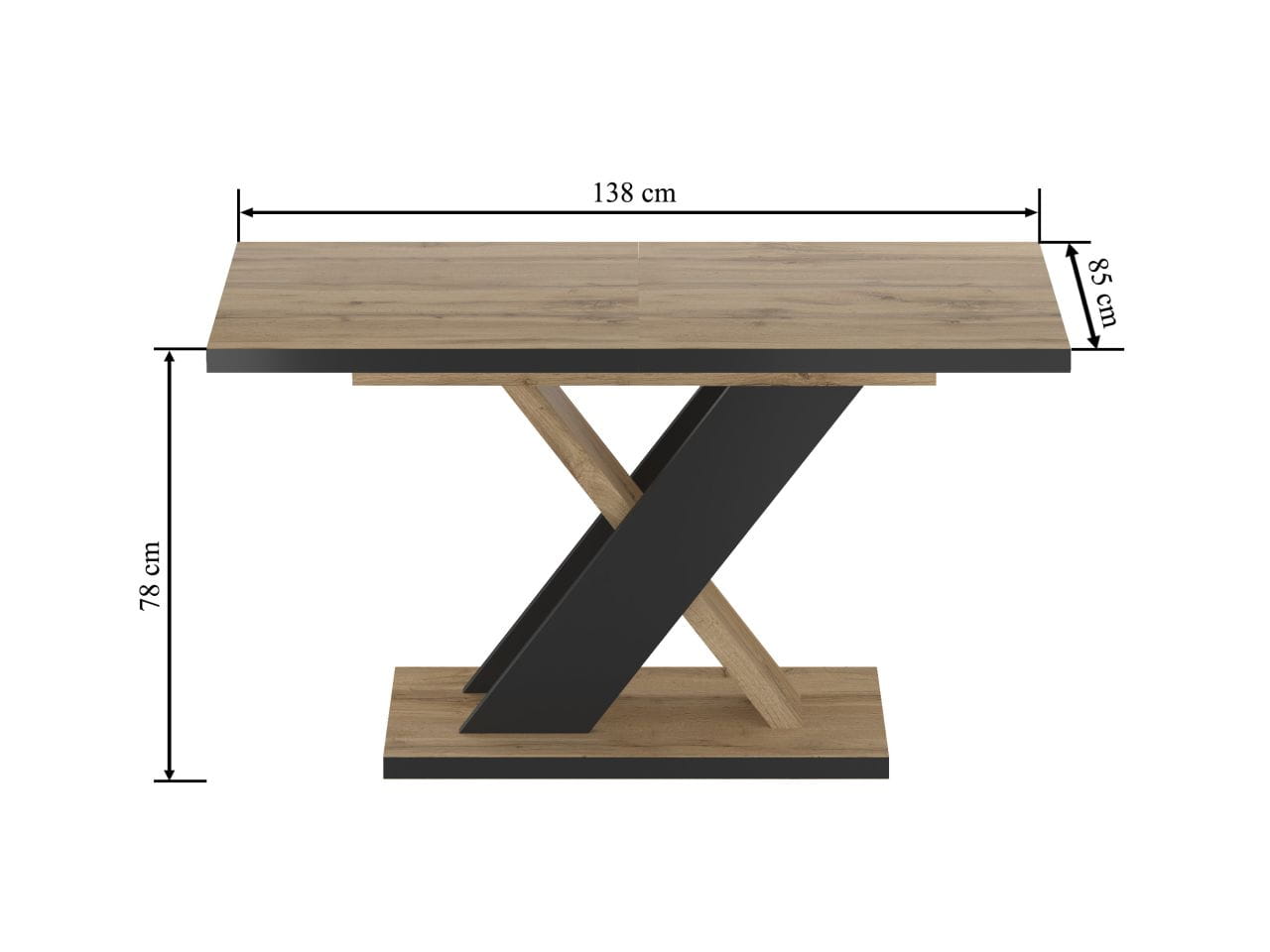 Stół prostokątny 138x85 cm, rozkładany do 208 cm, dąb wotan/czarny Eliasz