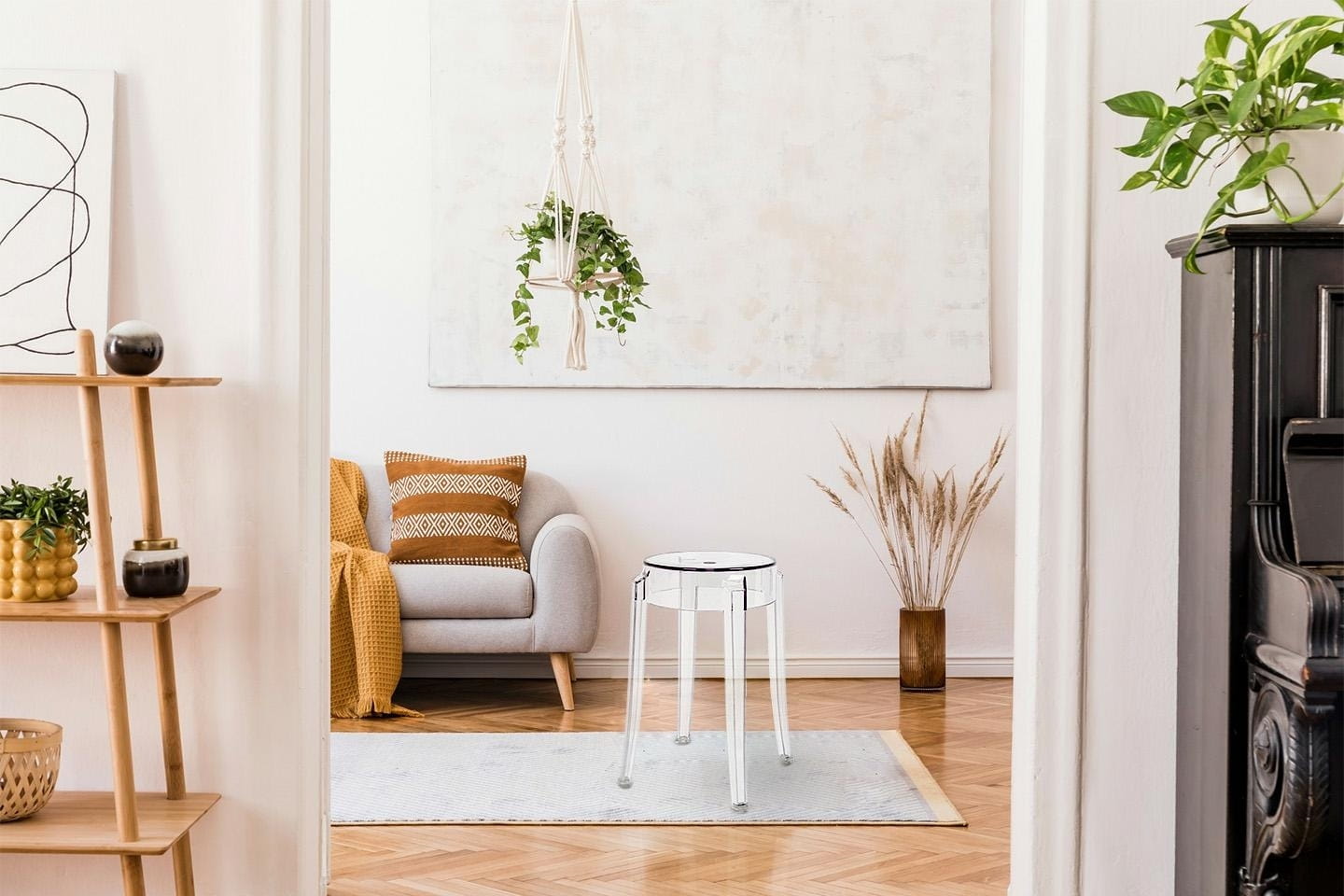 Stołek CHARLES 46 transparentny - poliwęglan to funkcjonalny i estetyczny wybór, który sprawdzi się w różnych wnętrzach. Wyróżnia się solidnym wykonaniem i ponadczasowym charakterem. Będzie idealnym dodatkiem do Twojej przestrzeni.