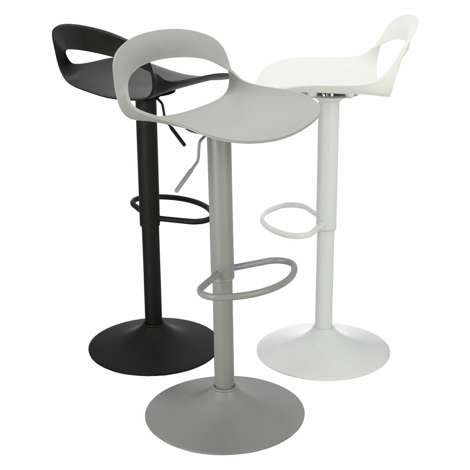 Matowy polipropylen siedziska idealnie współgra z matową malowaną proszkowo nogą stołka.