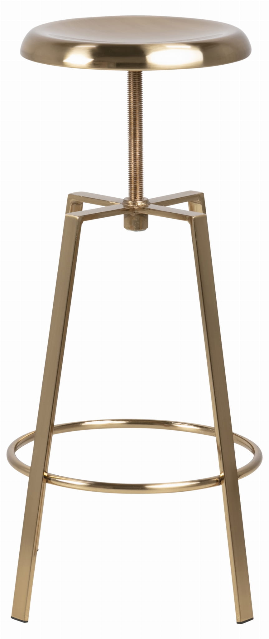 Siedzisko stołka zrobione jest z metalu w kolorze złotym.
