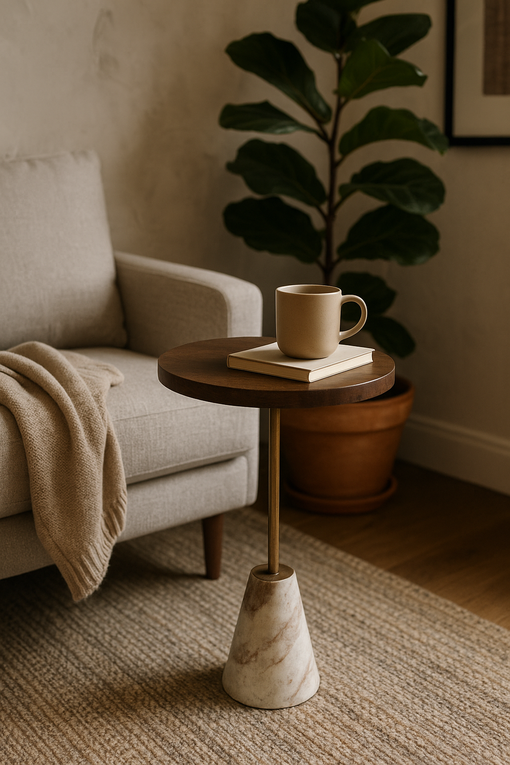 Stolik boczny Neith w stylu Japandi z marmurem i drewnem mango