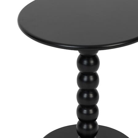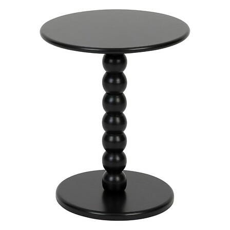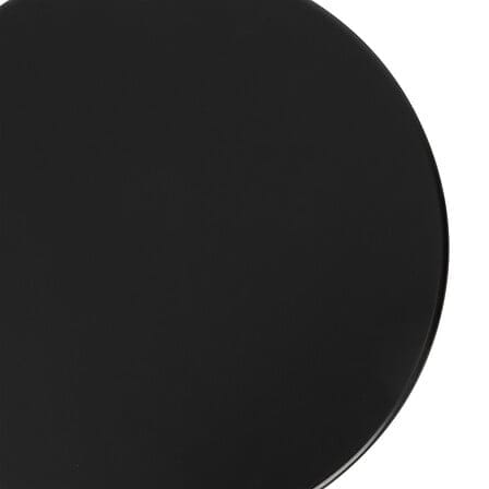 Okrągły blat o średnicy 38 cm oferuje praktyczną powierzchnię, na której postawisz filiżankę kawy, roślinę lub dekoracje. Czarna, matowa powierzchnia dodaje całości nowoczesnego charakteru.