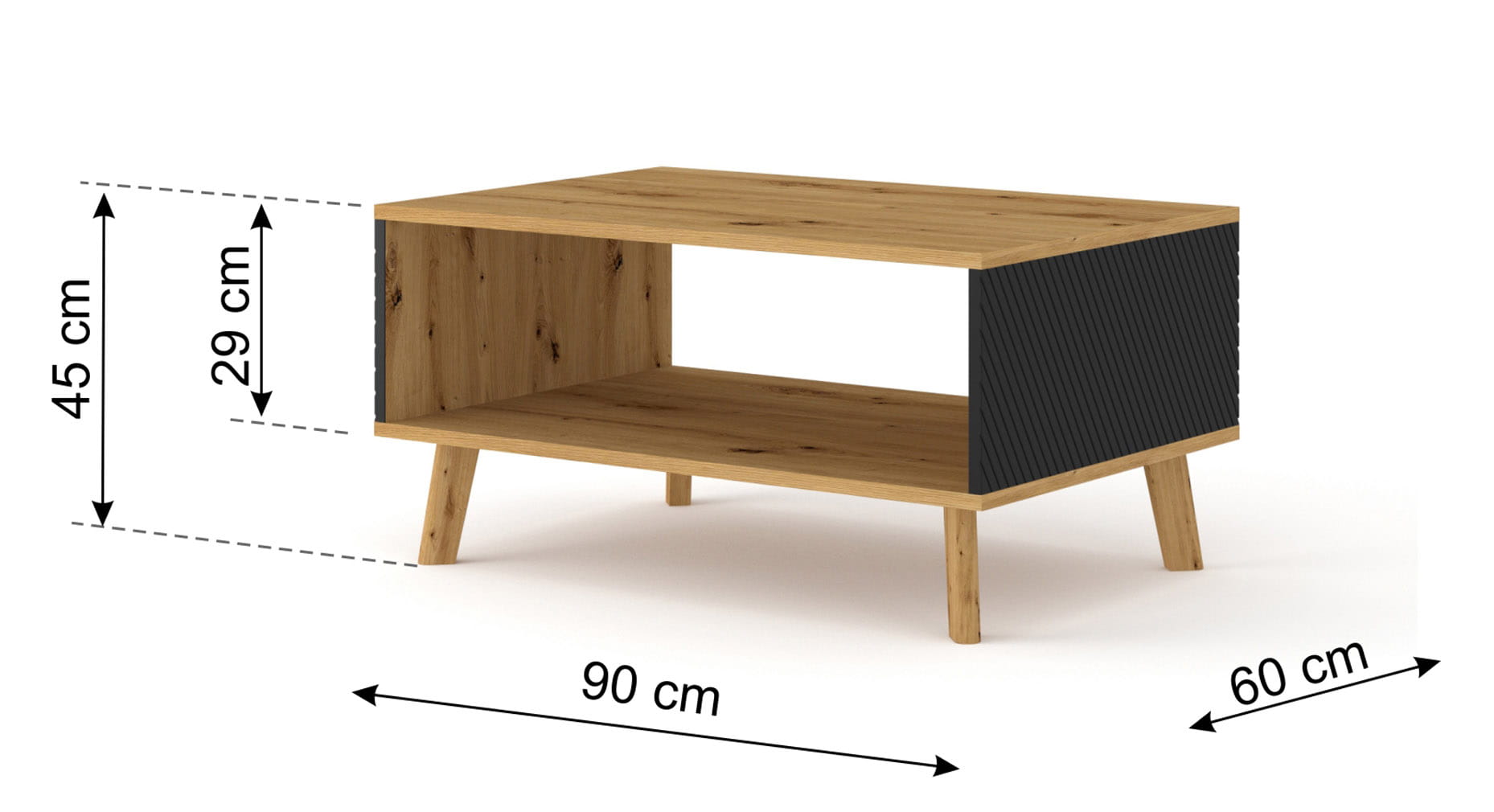 Stolik do salonu 90x60 cm, dąb artisan/czarny Luxi