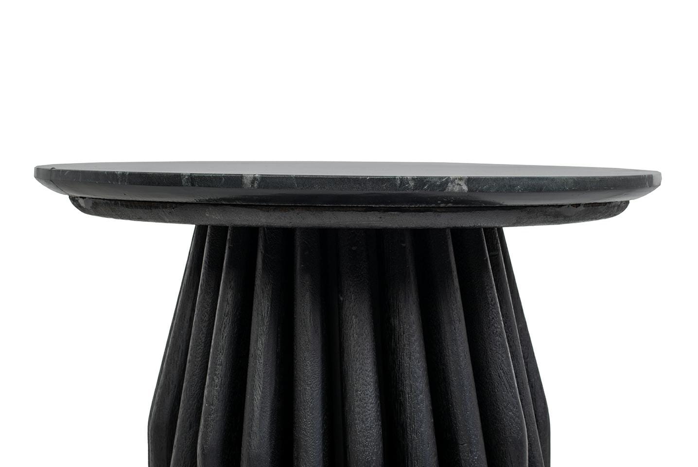 Blat wykonany z marmuru Black Marine zachwyca szlachetnym wyglądem, wprowadzając do przestrzeni nutę luksusu. Kontrastuje z nim solidna podstawa z drewna mango, która wnosi egzotyczne ciepło i naturalny charakter.