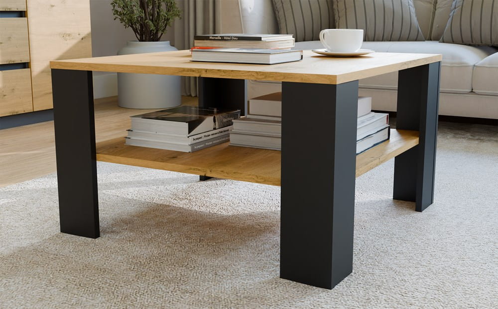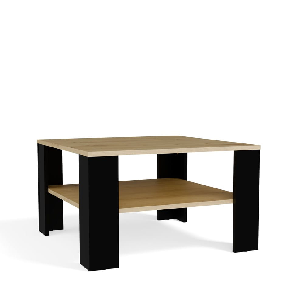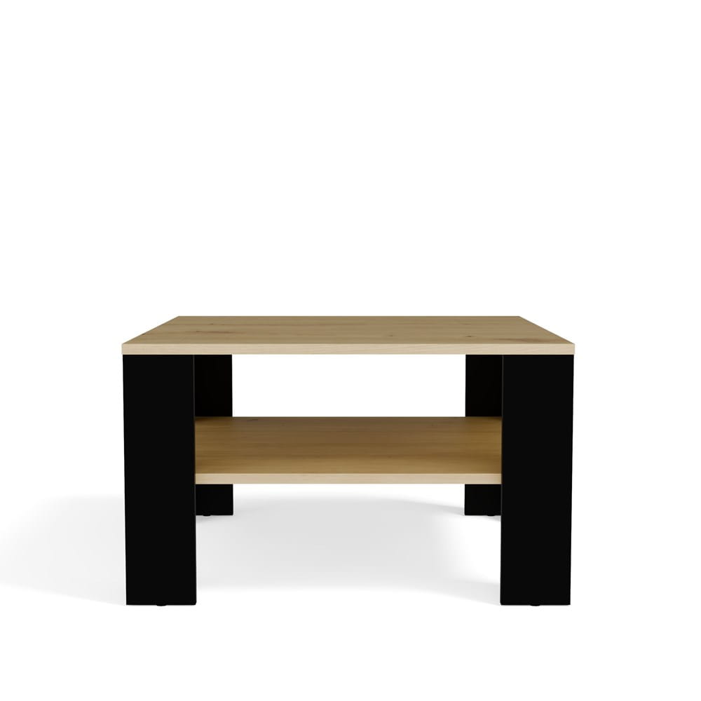 Stolik kawowy 68x68 cm, czarny matowy/dąb artisan z półką do salonu Square