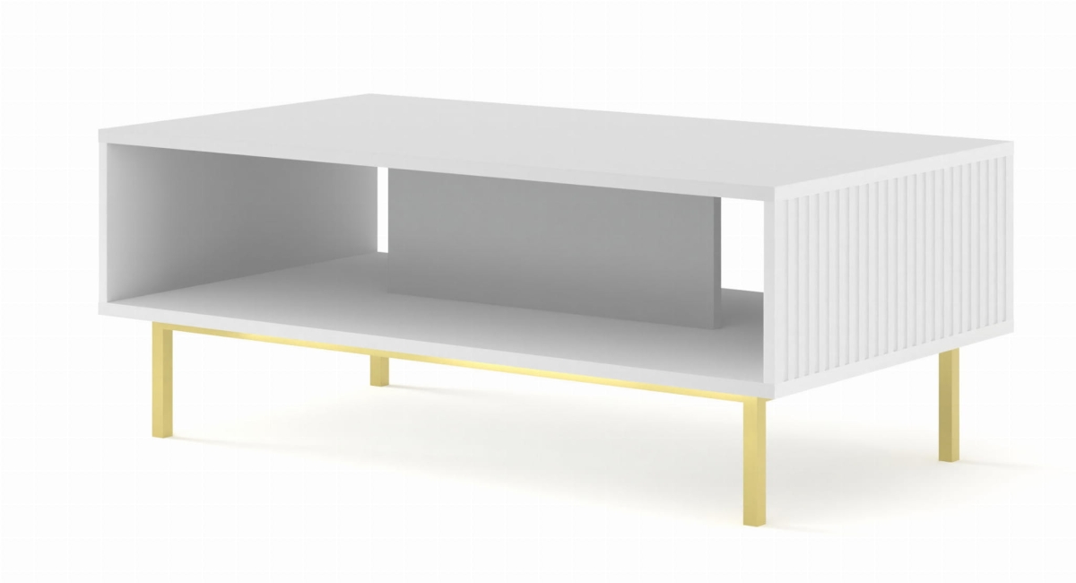 Stolik kawowy 90x60 cm, biały matowy ze złotymi nogami Ravenna B