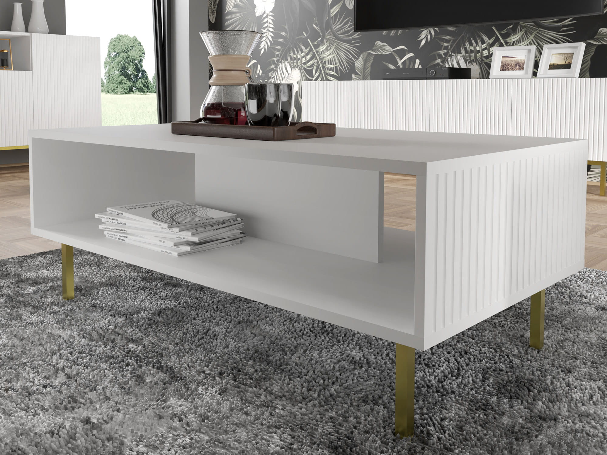 Stolik kawowy 90x60 cm, biały matowy ze złotymi szpilkami Ravenna B