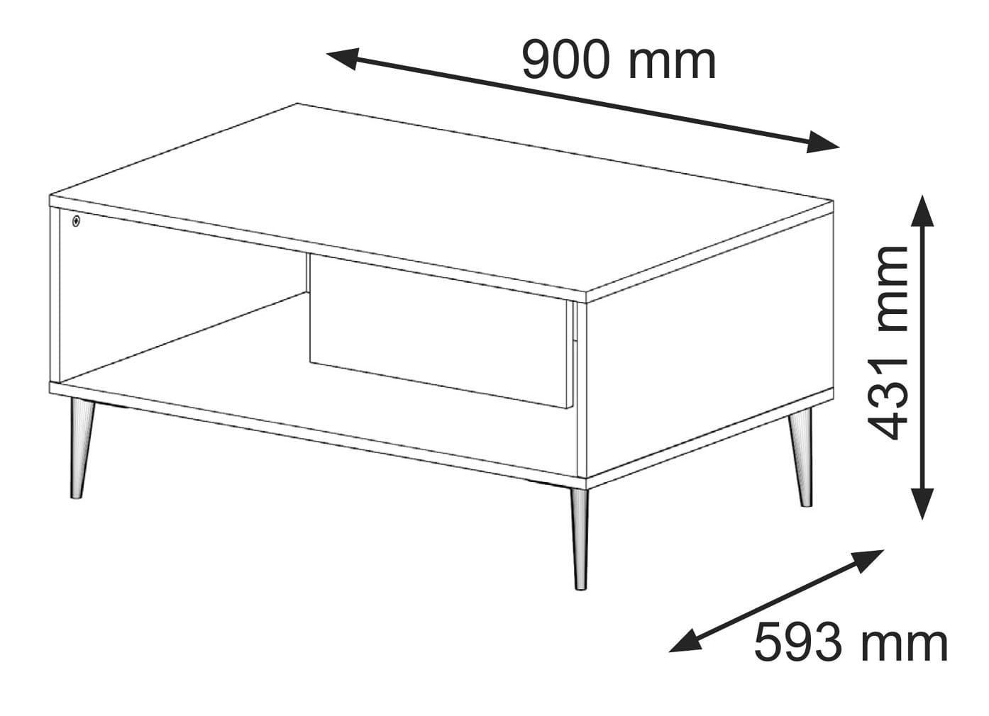 Dzięki dużemu, prostokątnemu blatowi zyskujesz przestrzeń na codzienne użytkowanie, a dodatkowa półka sprawia, że najpotrzebniejsze przedmioty, takie jak czasopisma, piloty czy urządzenia elektroniczne, zawsze będą pod ręką.