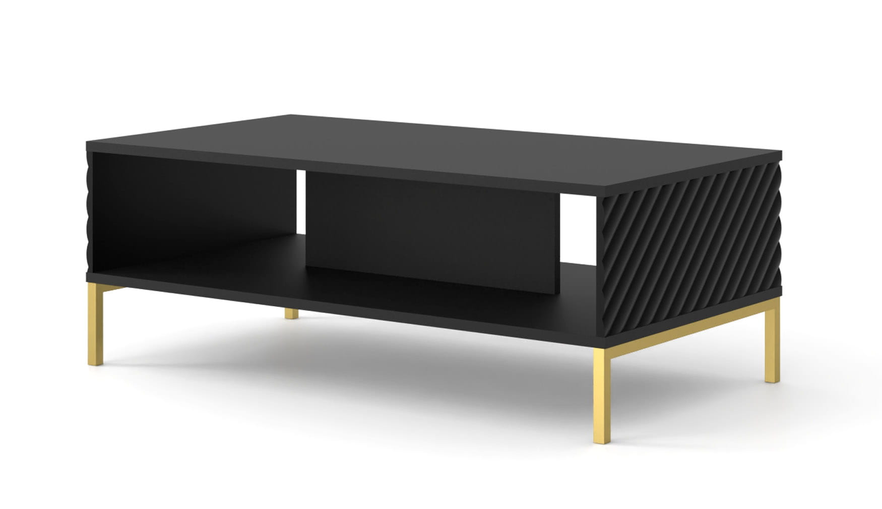 Stolik kawowy 90x60 cm, czarny matowy, ze złotą podstawą do salonu Surf