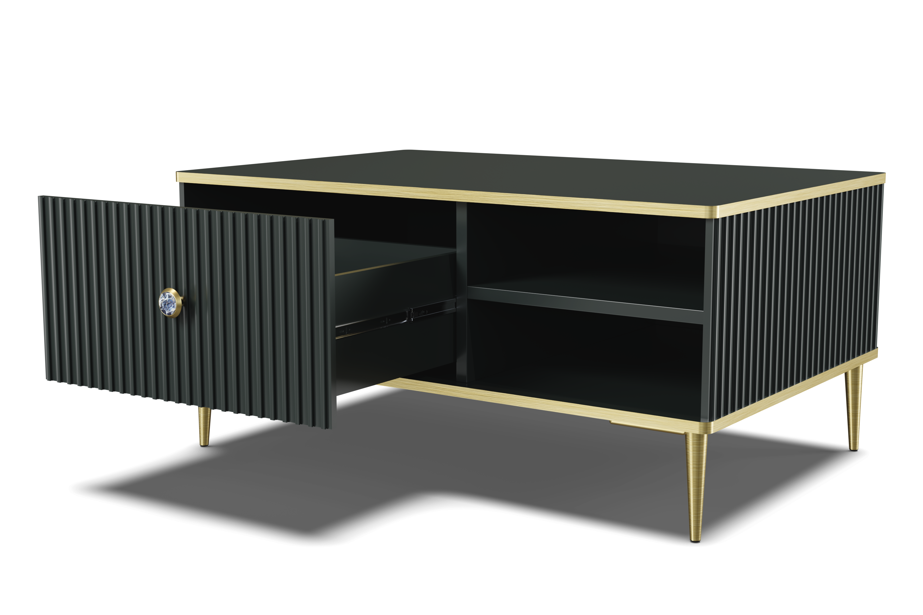 Stolik kawowy 90x60 cm, czarny matowy ze złotymi akcentami do salonu, Petra