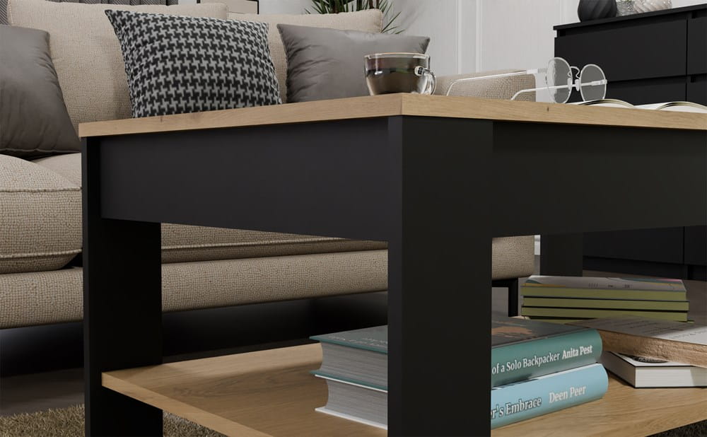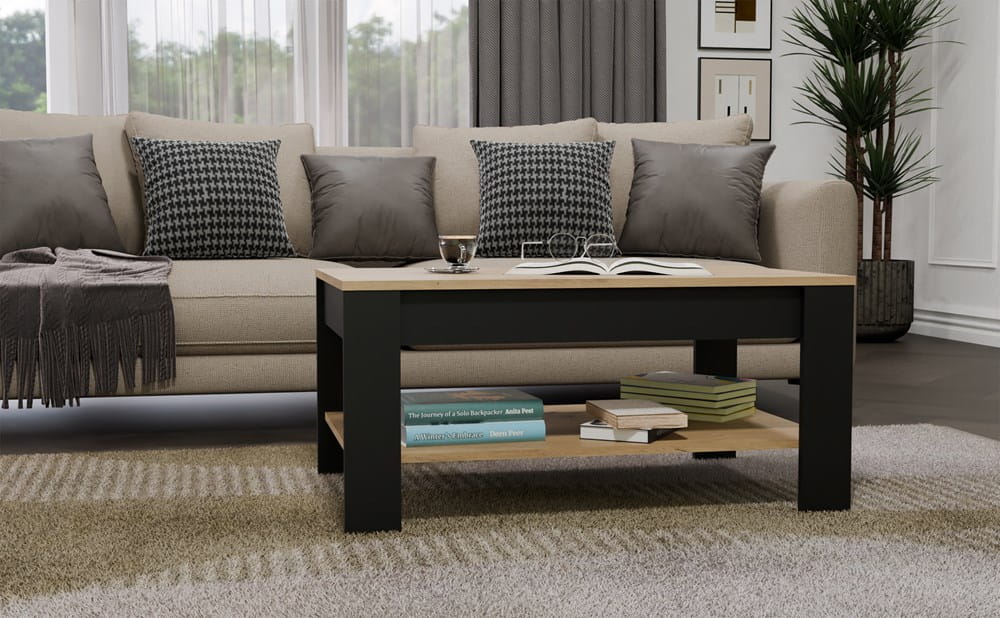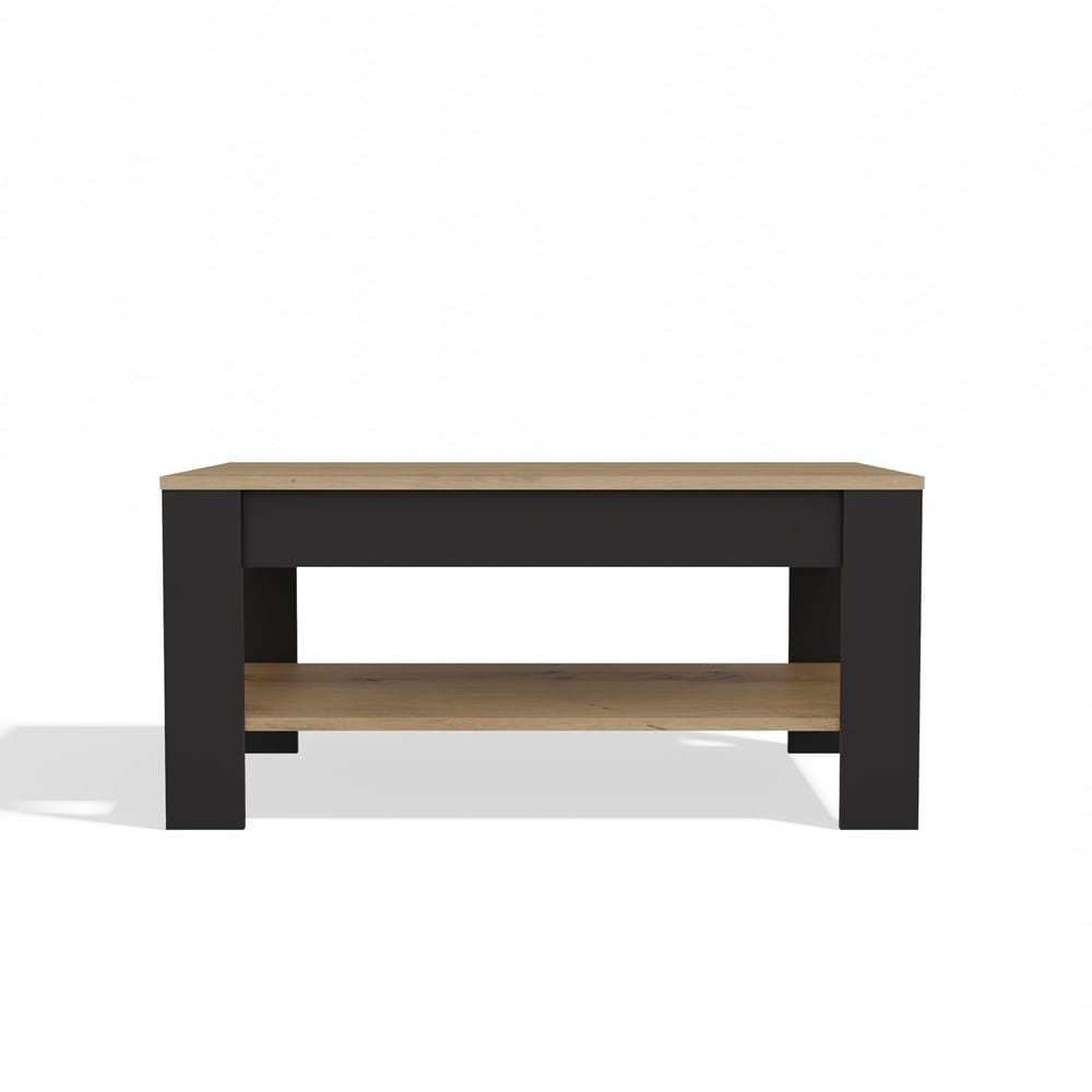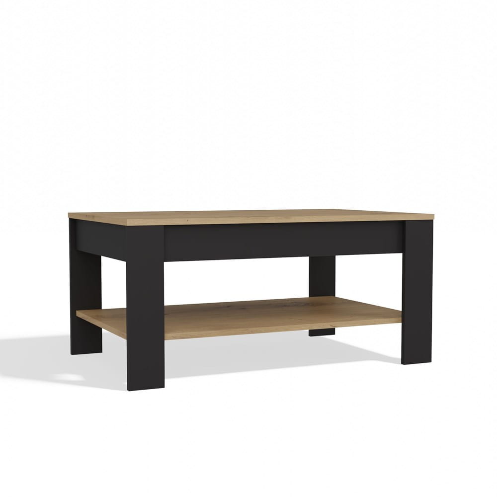 Nowoczesny stolik kawowy OHIO to połączenie elegancji i praktyczności, które idealnie uzupełni salon, pokój dzienny lub strefę relaksu. Ciepły dekor Dąb Artisan w zestawieniu z głęboką czernią nadaje mu ponadczasowego, stylowego charakteru.