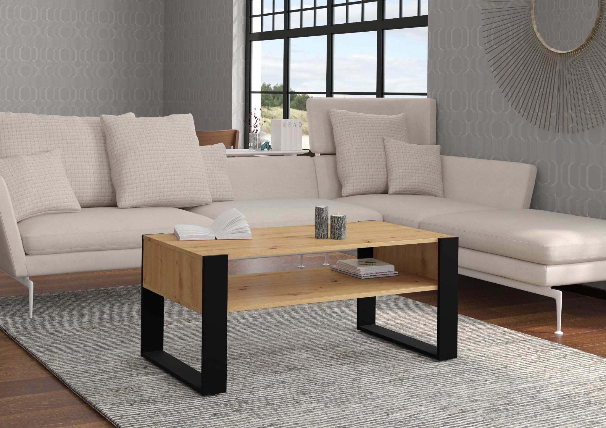 Dzięki dodatkowej półce pod blatem, stolik oferuje wygodne miejsce na przechowywanie czasopism, pilotów czy książek, pomagając w utrzymaniu porządku w salonie.