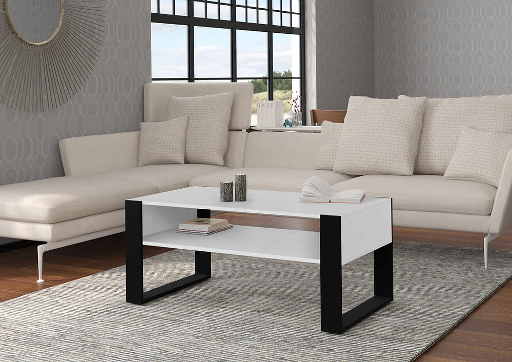 Stolik kawowy biały matowy z półką 110x60 cm, do salonu Nuka F