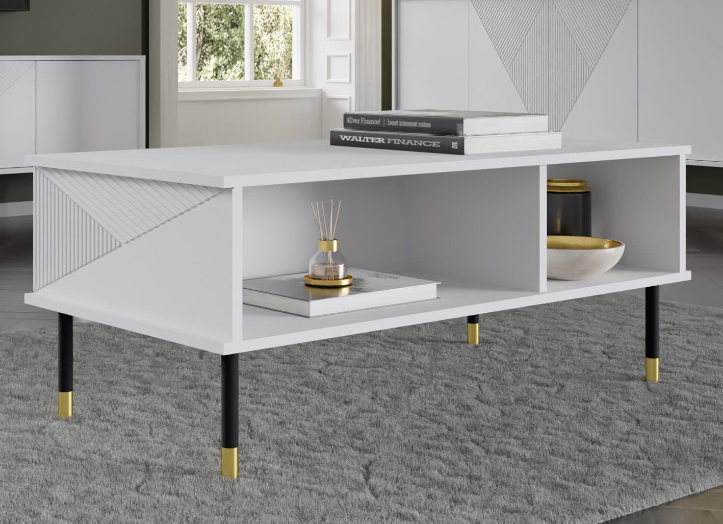 Frezowane fronty: Wyjątkowy akcent estetyczny, który nadaje stolikowi unikalny wygląd.