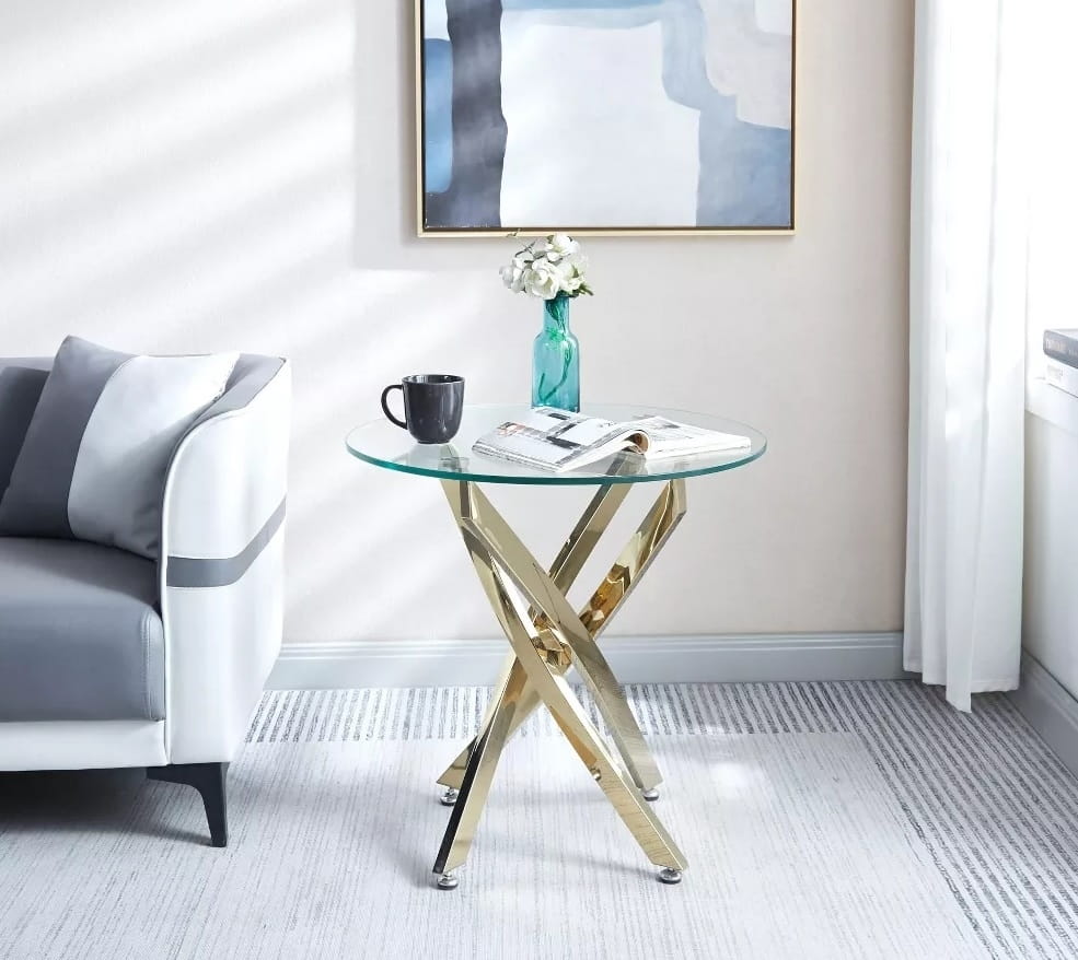 Z okrągłym blatem o średnicy 8 mm wykonanego z hartowanego szkła, stolik prezentuje się nowocześnie i elegancko, pasując zarówno do salonu, jako stolik centralny, jak i do poczekalni, pełniąc funkcję stolika na czasopisma.