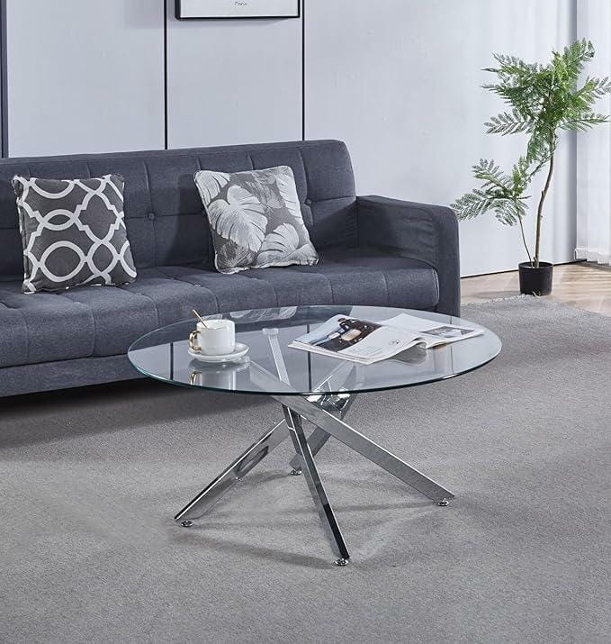 Stolik kawowy szklany 90 cm, do salonu z nogami chromowanymi Amber