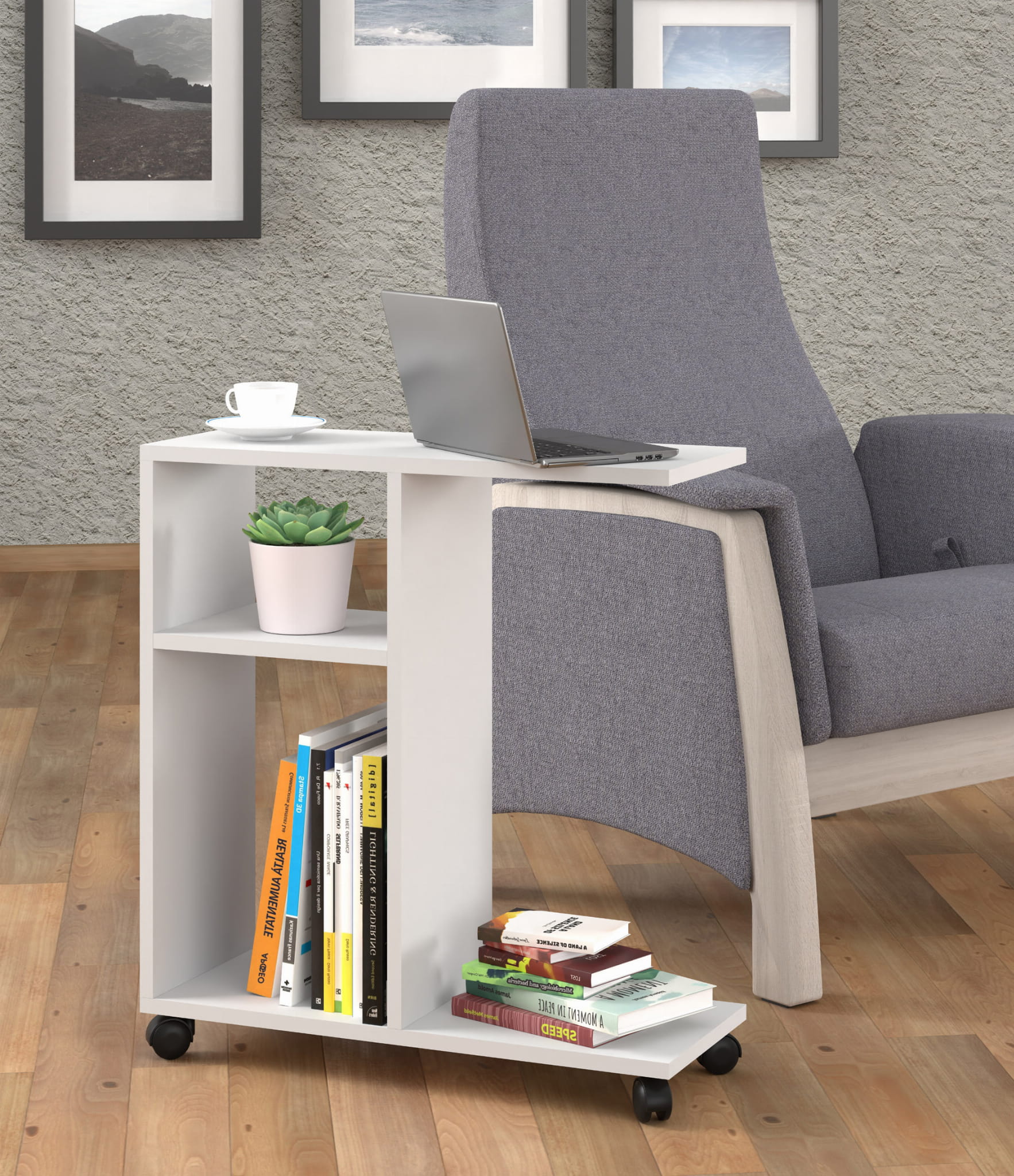 Stolik na kółkach do salonu, biały matowy Trasco 1