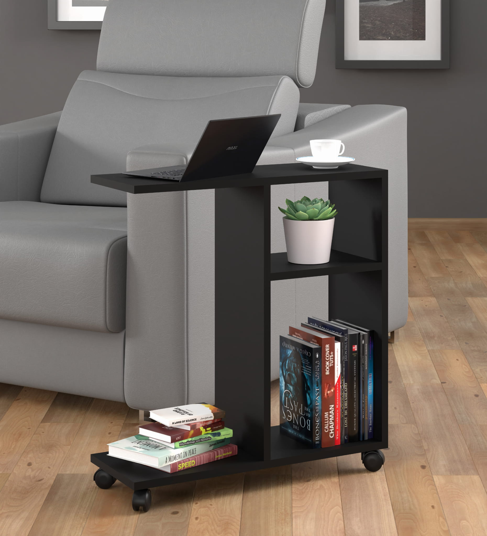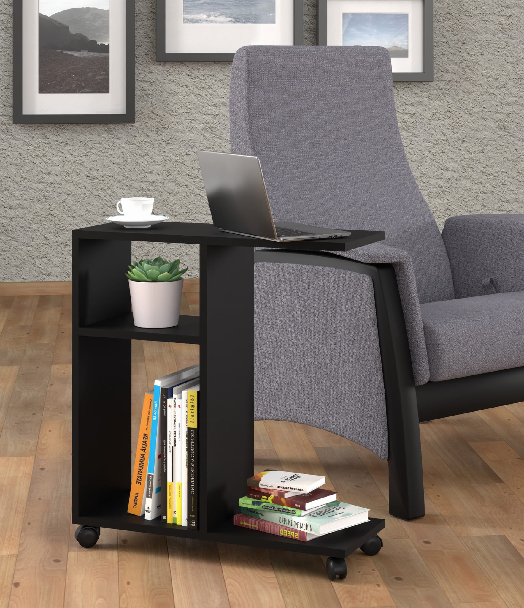 Stolik na kółkach do salonu, czarnym matowym Trasco 1