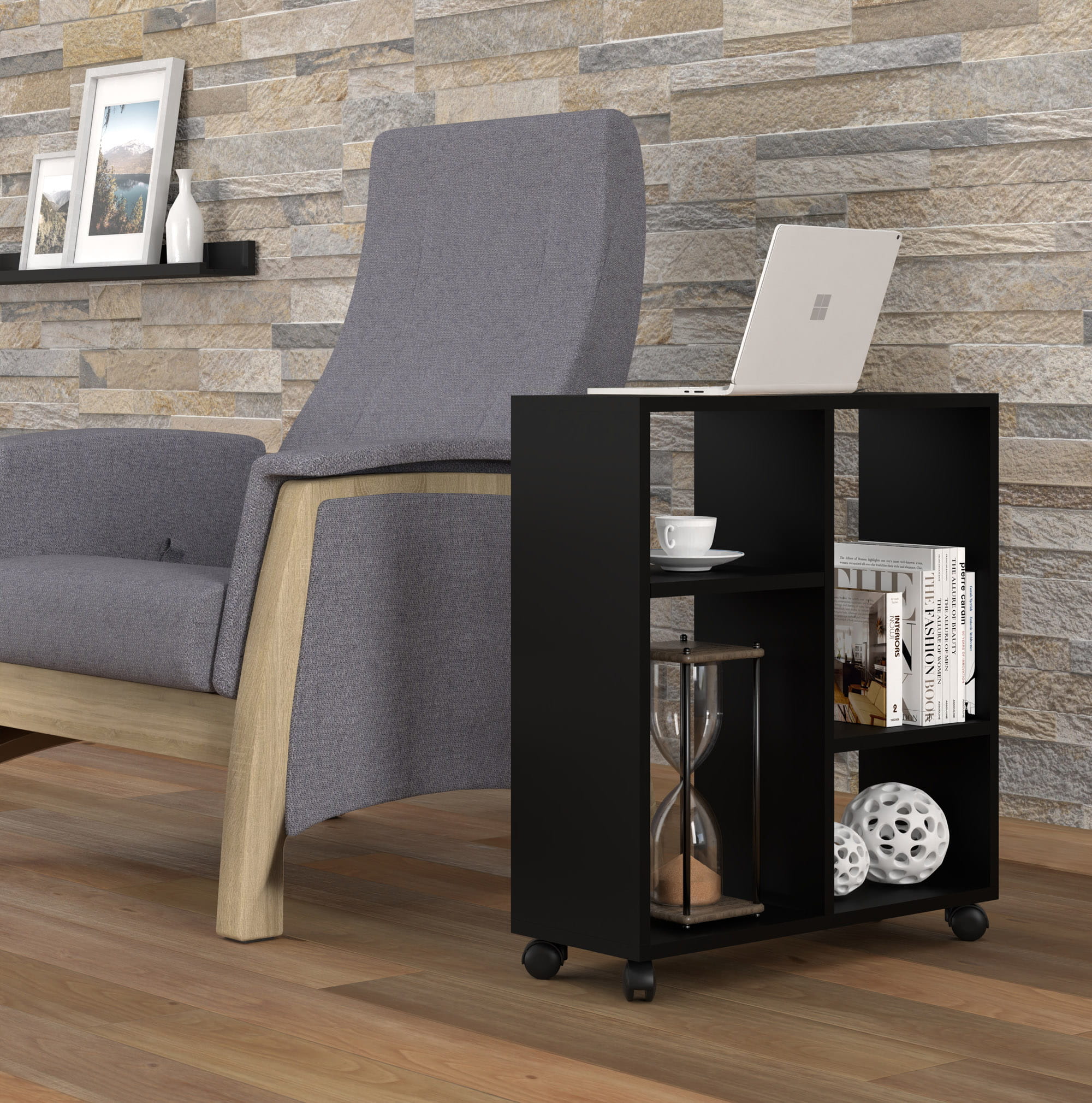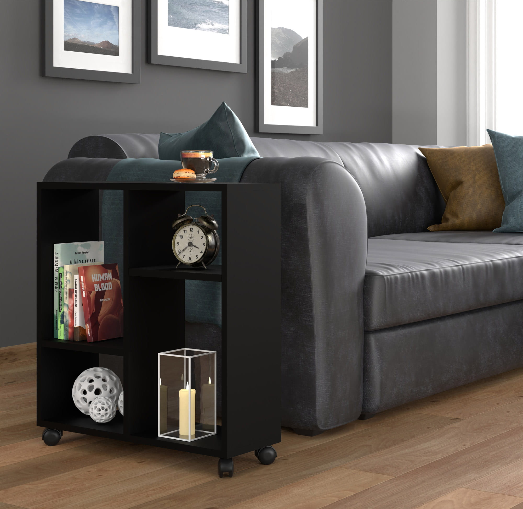 Stolik na kółkach do salonu, czarny matowy Trasco 2