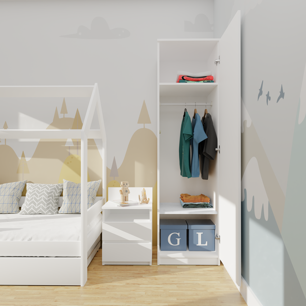 Szafa SD-50 to praktyczny i elegancki mebel, który sprawdzi się zarówno w sypialni, jak i w biurze czy pracowni. Prosta forma i nowoczesna linia podkreślają jej uniwersalny charakter, a wysoka jakość wykonania zapewnia trwałość na lata.