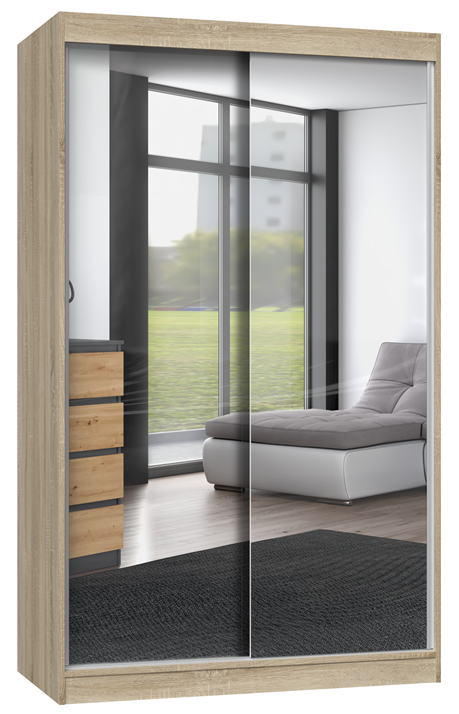 Szafa dwurzwiowa 120 cm, z drzwiami przesuwnymi, z lustrem dąb sonoma do sypialni Iga 120A