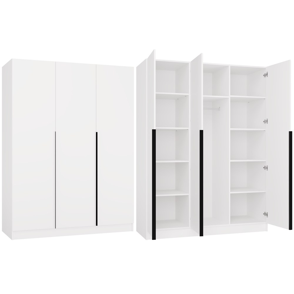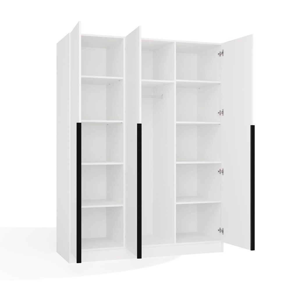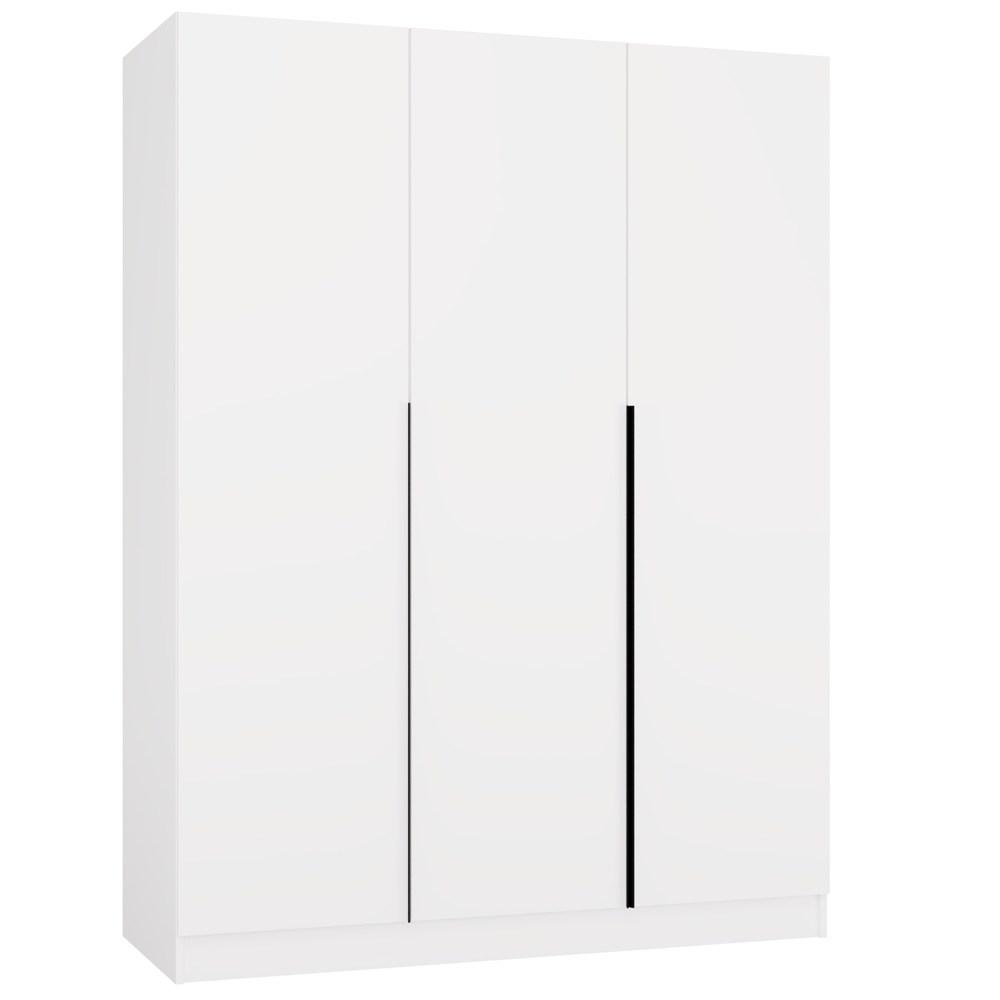 Szafa trzydzwiowa 150 cm, czarne uchwyty do sypialni biała matowa Senso 3D