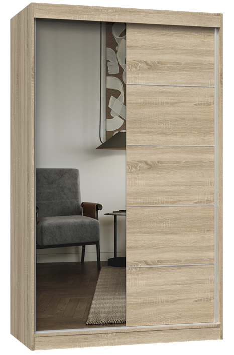 Szafa z drzwiami przesuwnymi 120 cm, dąb sonoma z lustrem do sypialni Iga 120 A/C