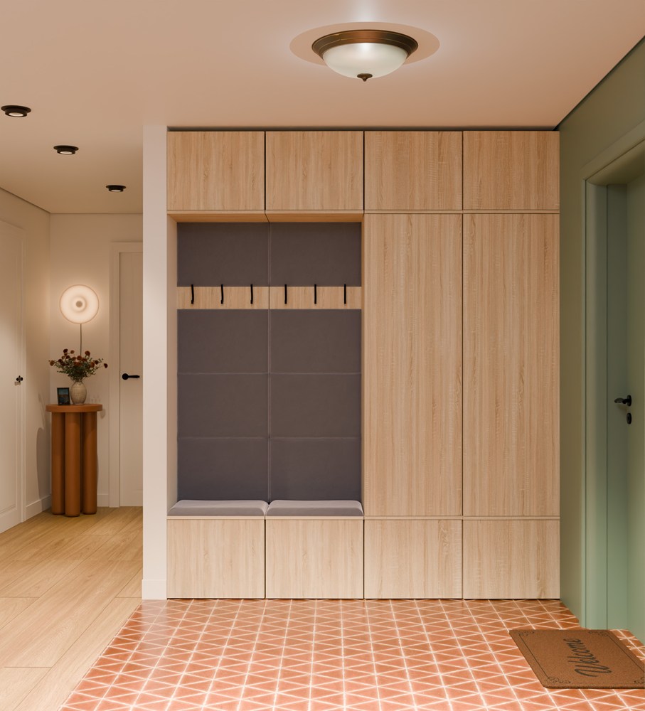 - Tapicerowane siedzisko – wygodne miejsce do zakładania i zdejmowania obuwia