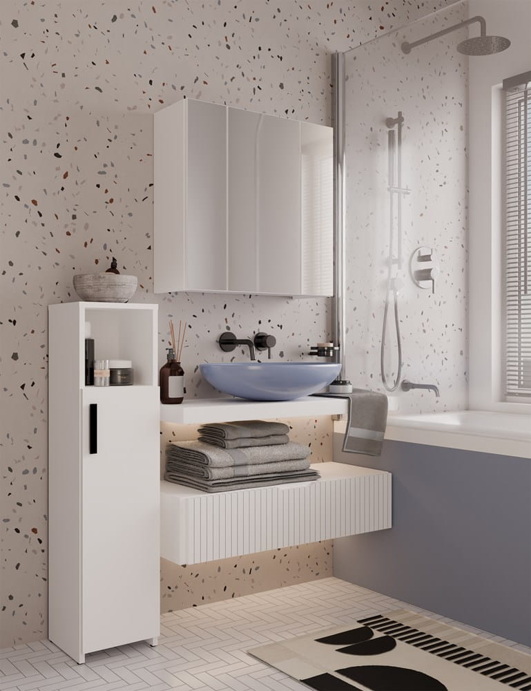 Szafka łazienkowa POLA 3L to eleganckie i praktyczne rozwiązanie, które pomoże w pełni wykorzystać przestrzeń nad umywalką. Dzięki kompaktowej formie i lustrzanym frontom szafka idealnie sprawdzi się w małych i średnich łazienkach, dodając im lekkości i nowoczesnego stylu.