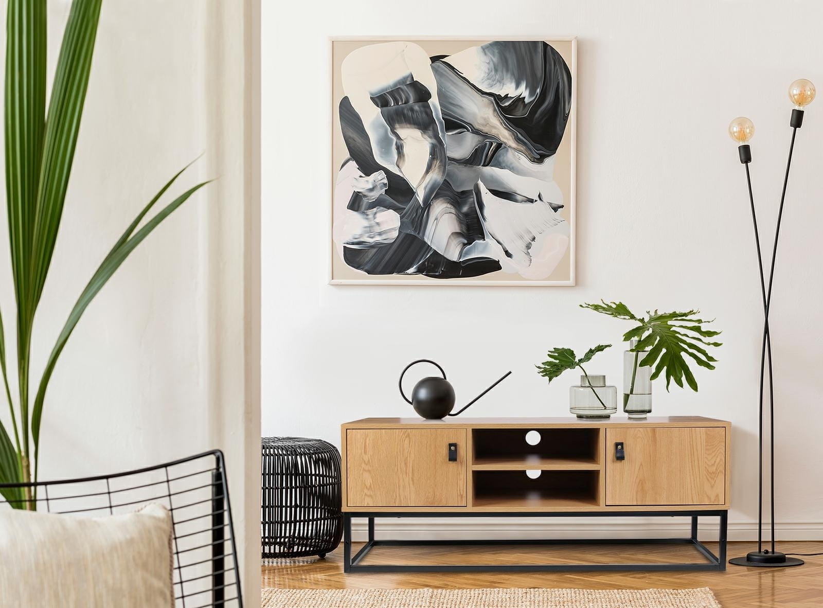 Szafka RTV Abbott dąb/czarna to funkcjonalny i estetyczny wybór, który sprawdzi się w różnych wnętrzach. Wyróżnia się solidnym wykonaniem i ponadczasowym charakterem. Będzie idealnym dodatkiem do Twojej przestrzeni.