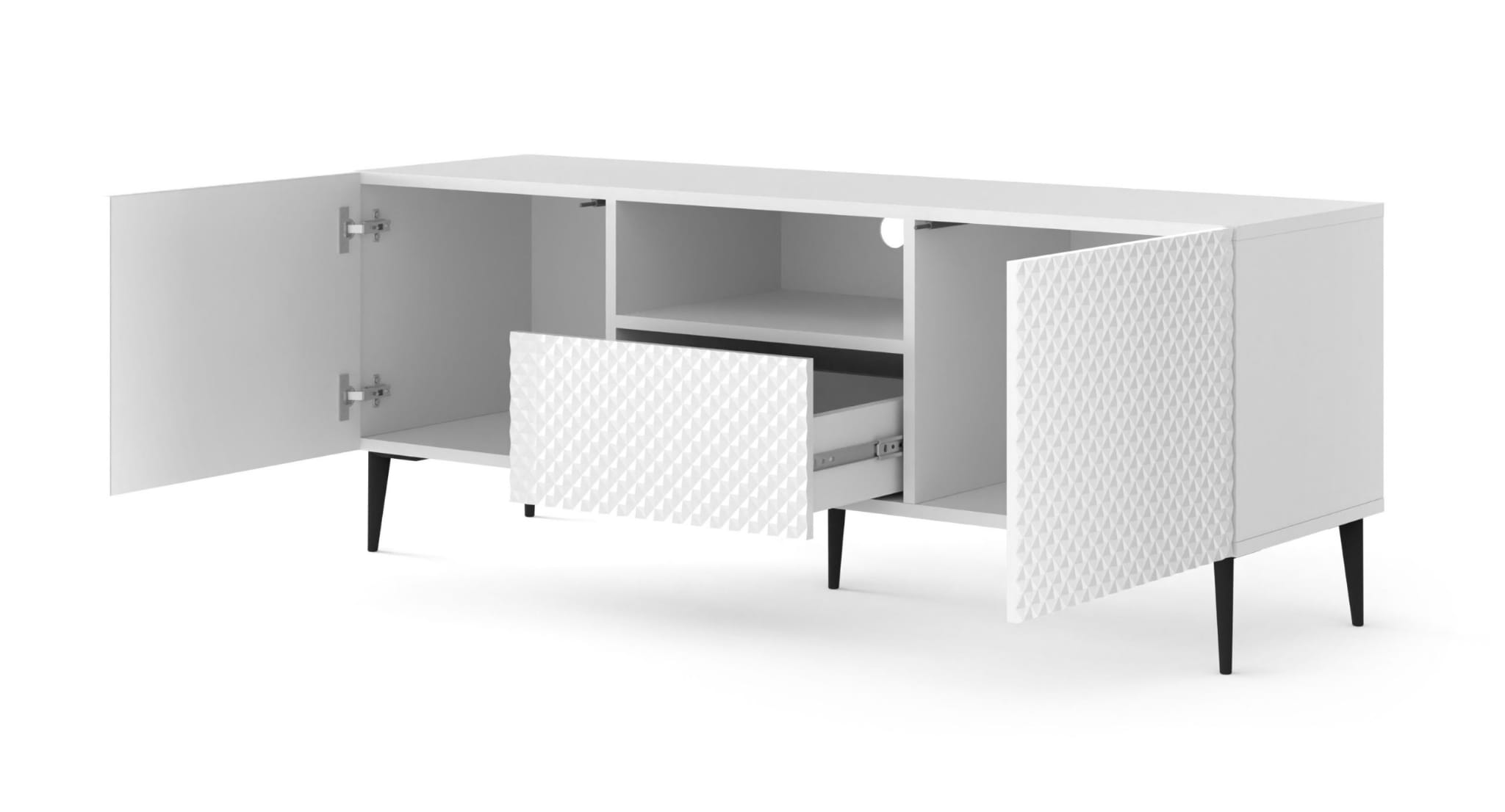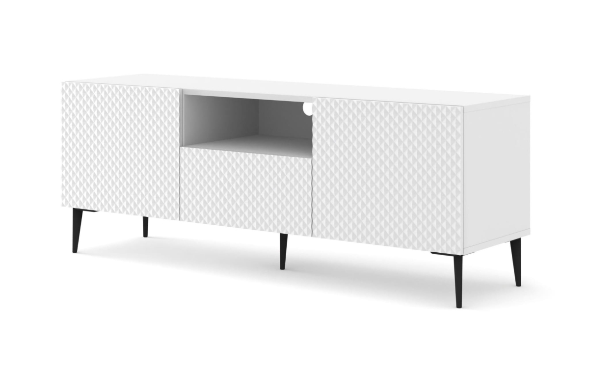 Szafka RTV 150 cm, biała do salonu na czarnych szpilkach Ravenna PC 2D1S