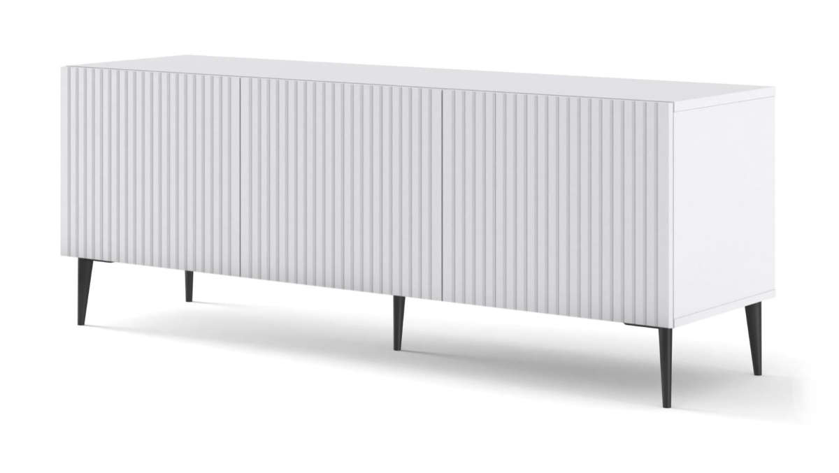 Szafka RTV 150 cm, biała matowa na czarnych szpilkach Ravenna B