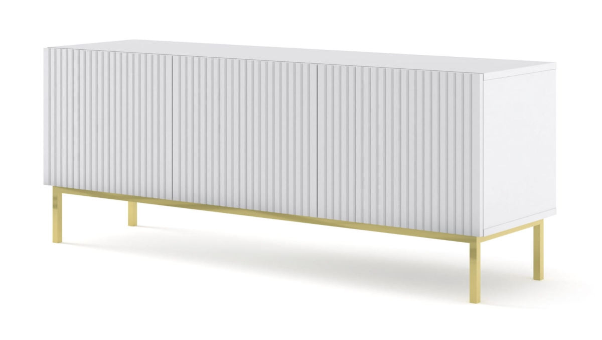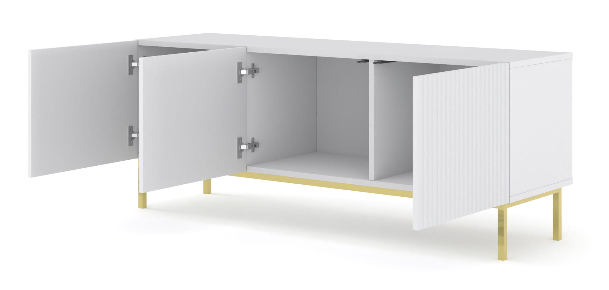Szafka RTV 150 cm, biała matowa na złotych nogach Ravenna B