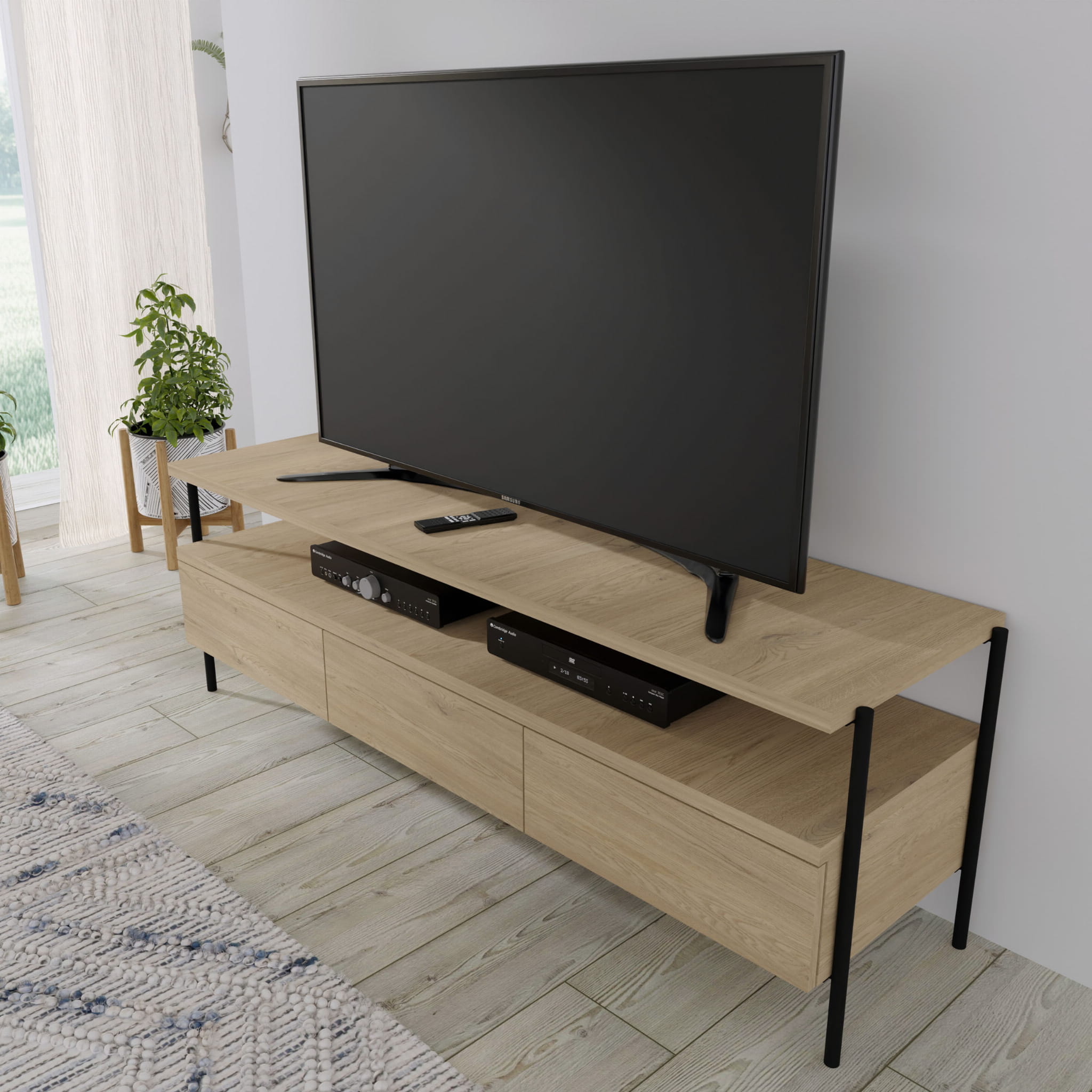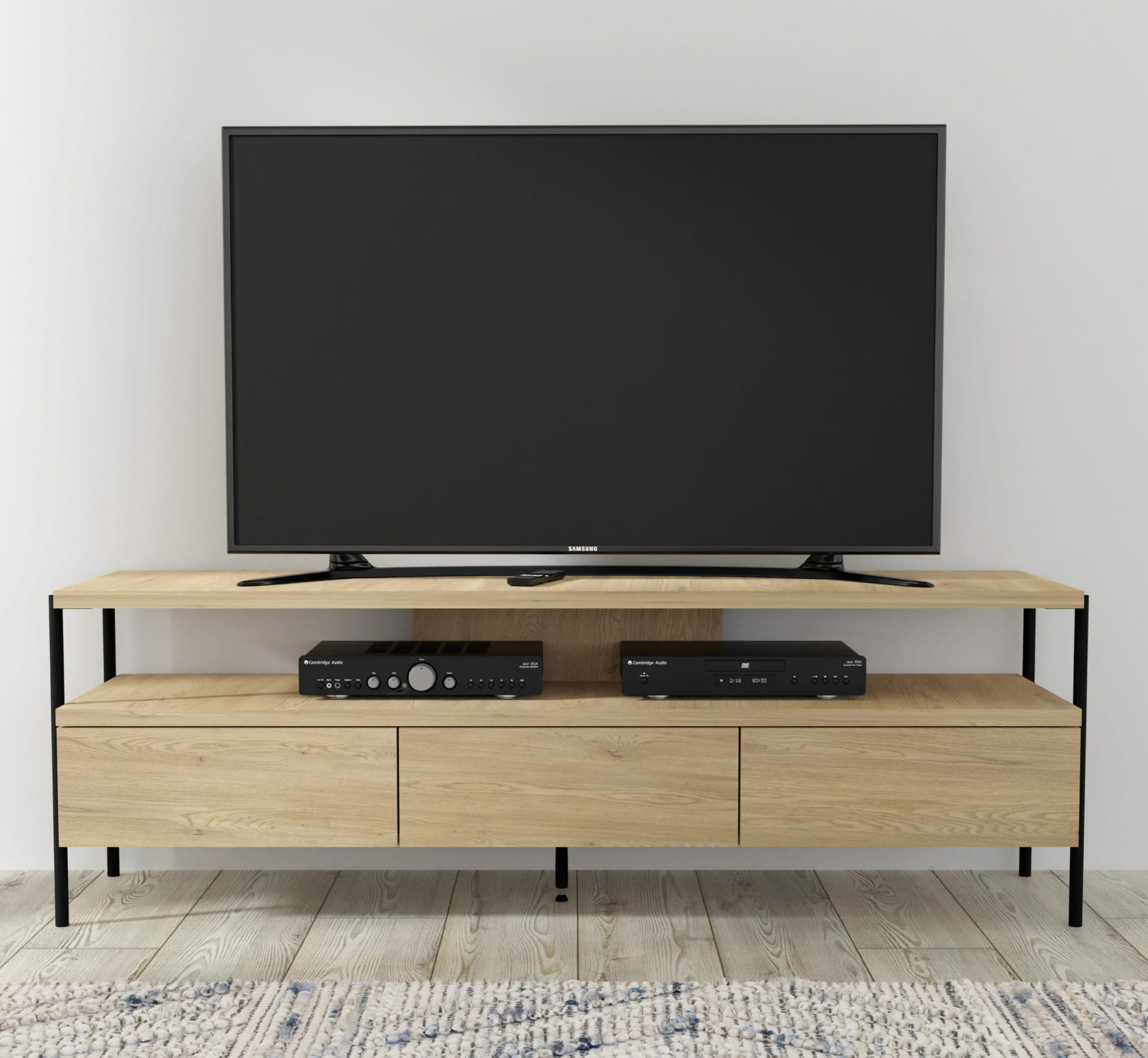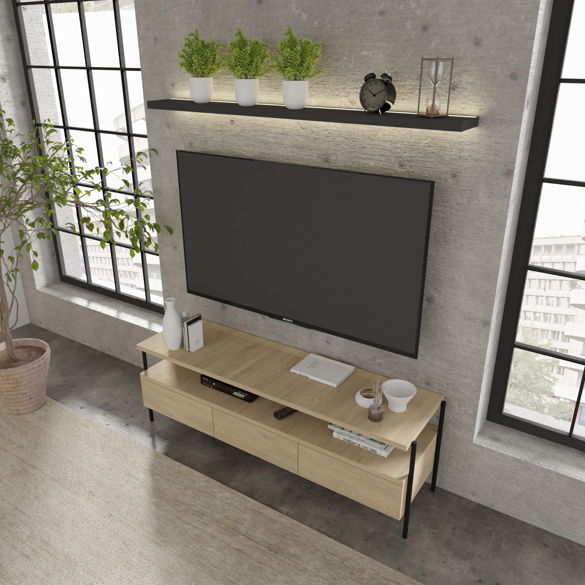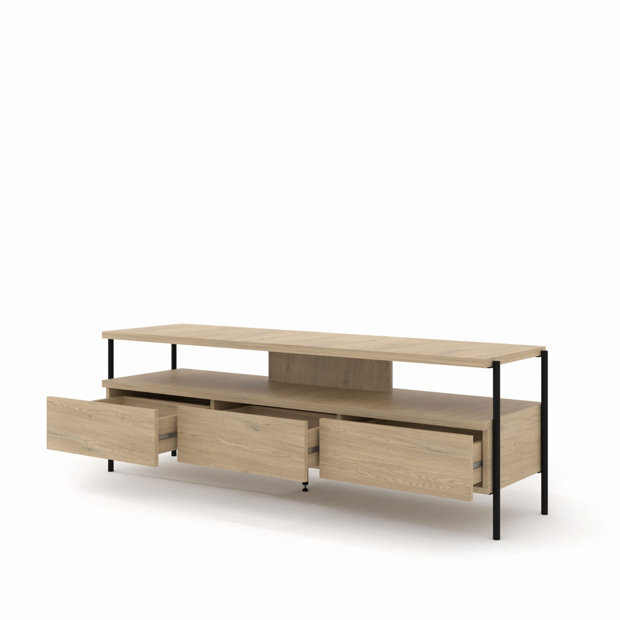 Minimalistyczna forma i funkcjonalny układ sprawiają, że mebel doskonale odnajdzie się w nowoczesnych oraz skandynawskich aranżacjach. Otwarta półka pozwala na wygodne ustawienie sprzętu multimedialnego, a trzy pojemne szuflady umożliwiają praktyczne przechowywanie akcesoriów RTV.