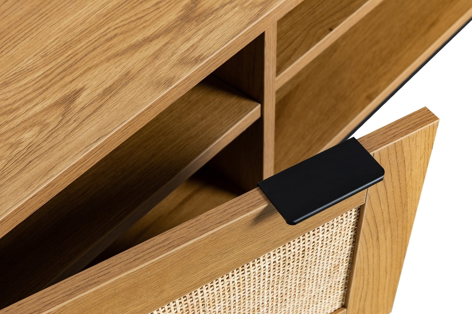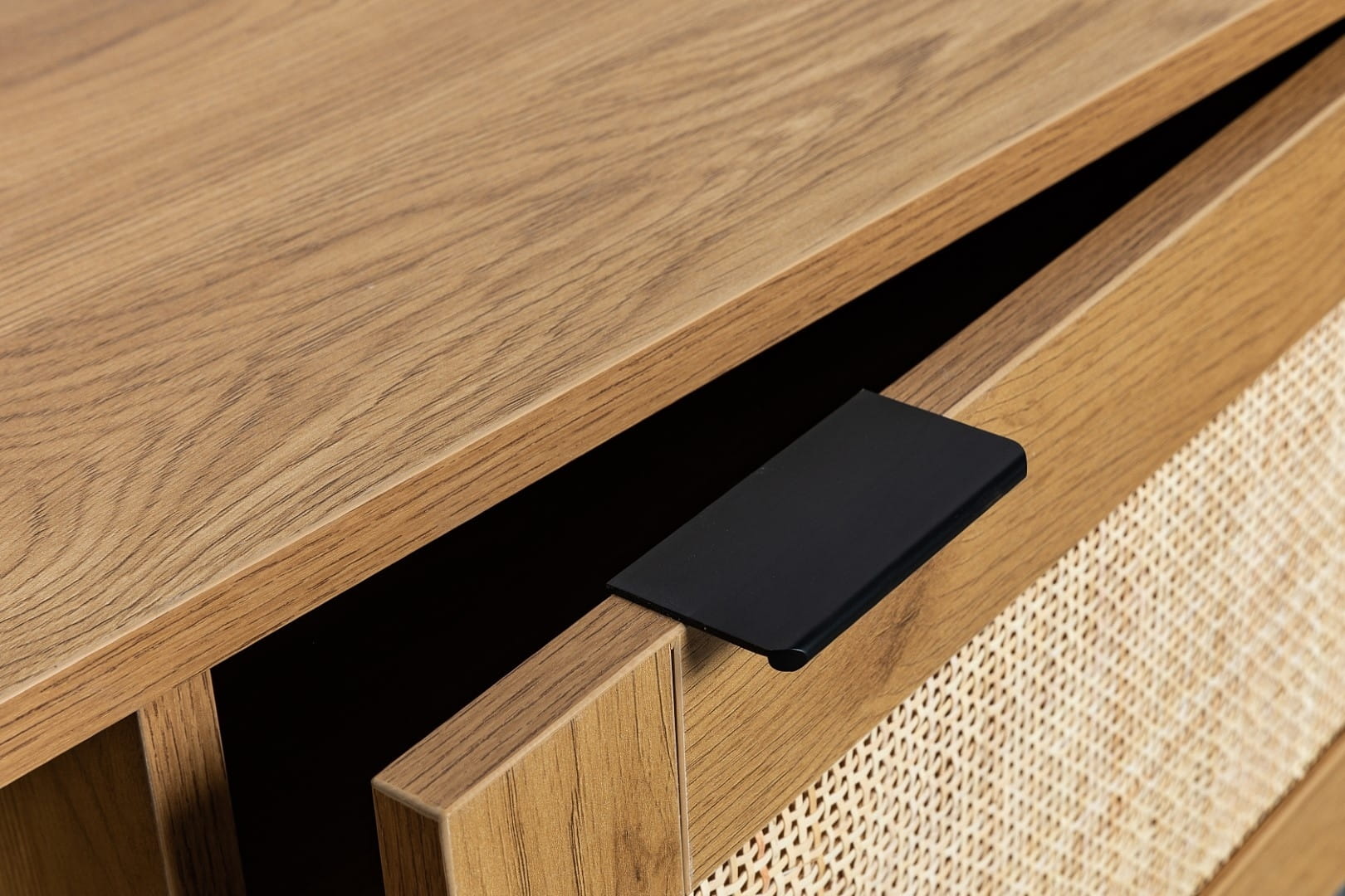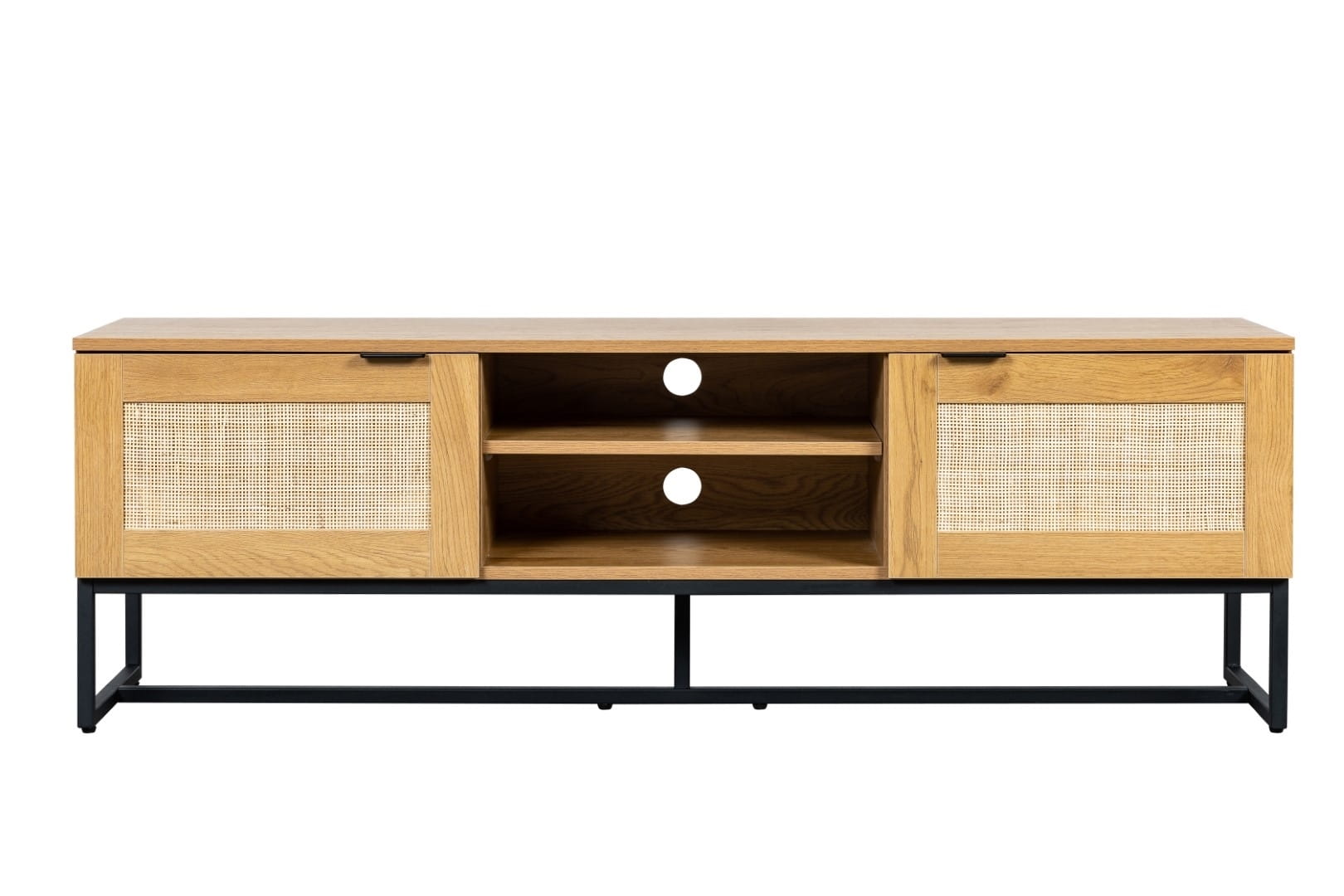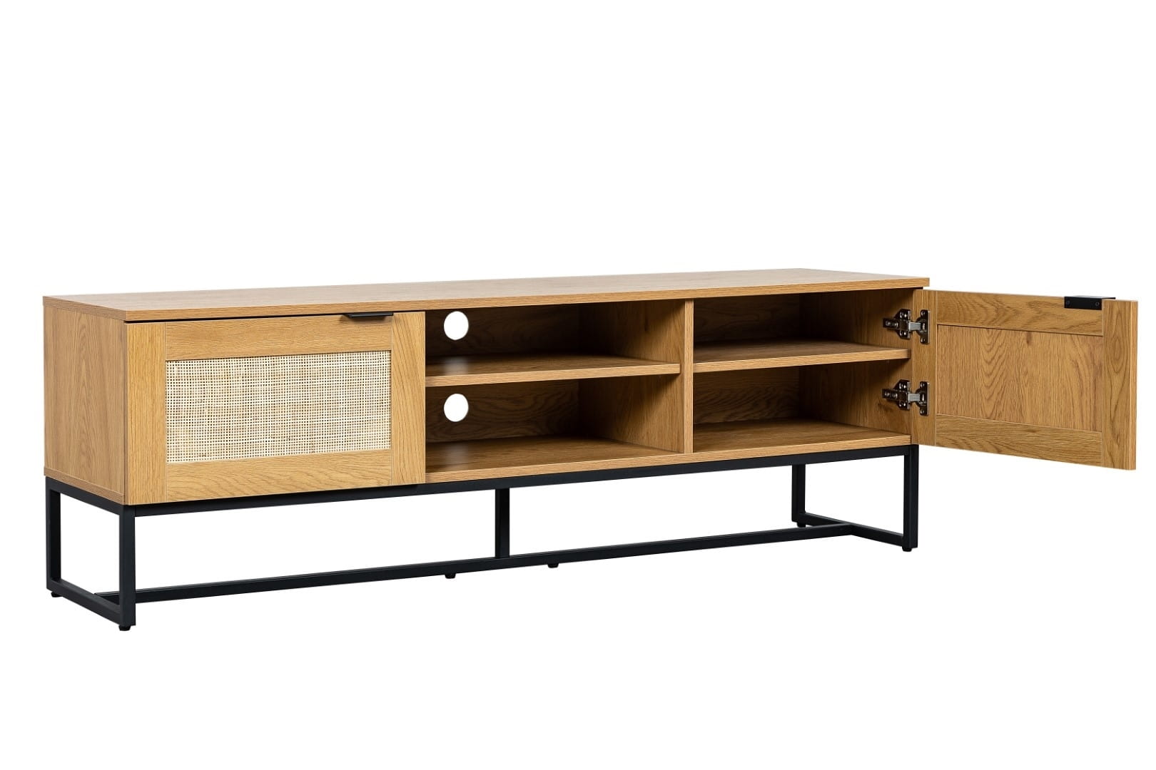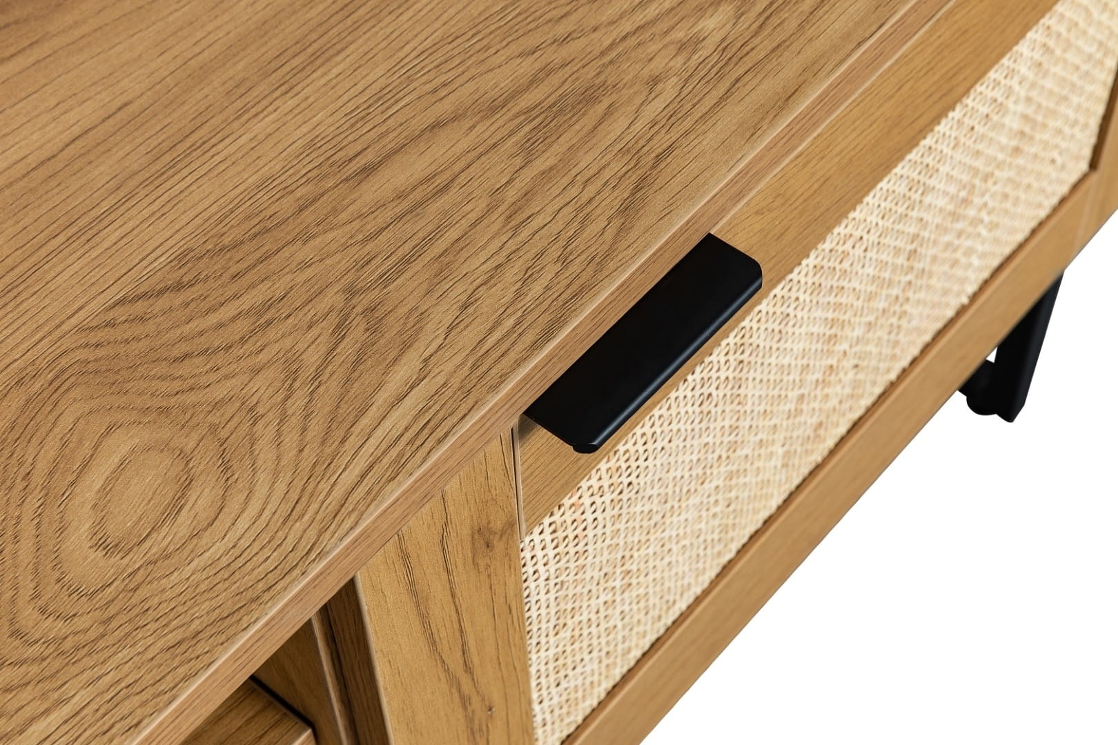 Szafka RTV 150 cm, do salonu z rattanowymi frontami Capri