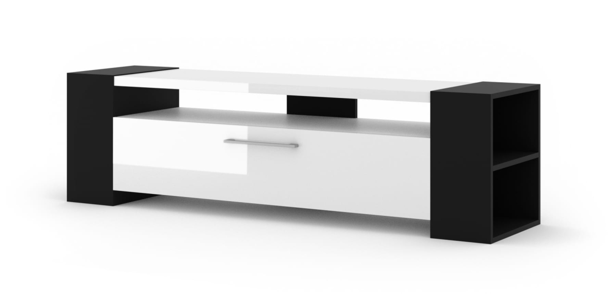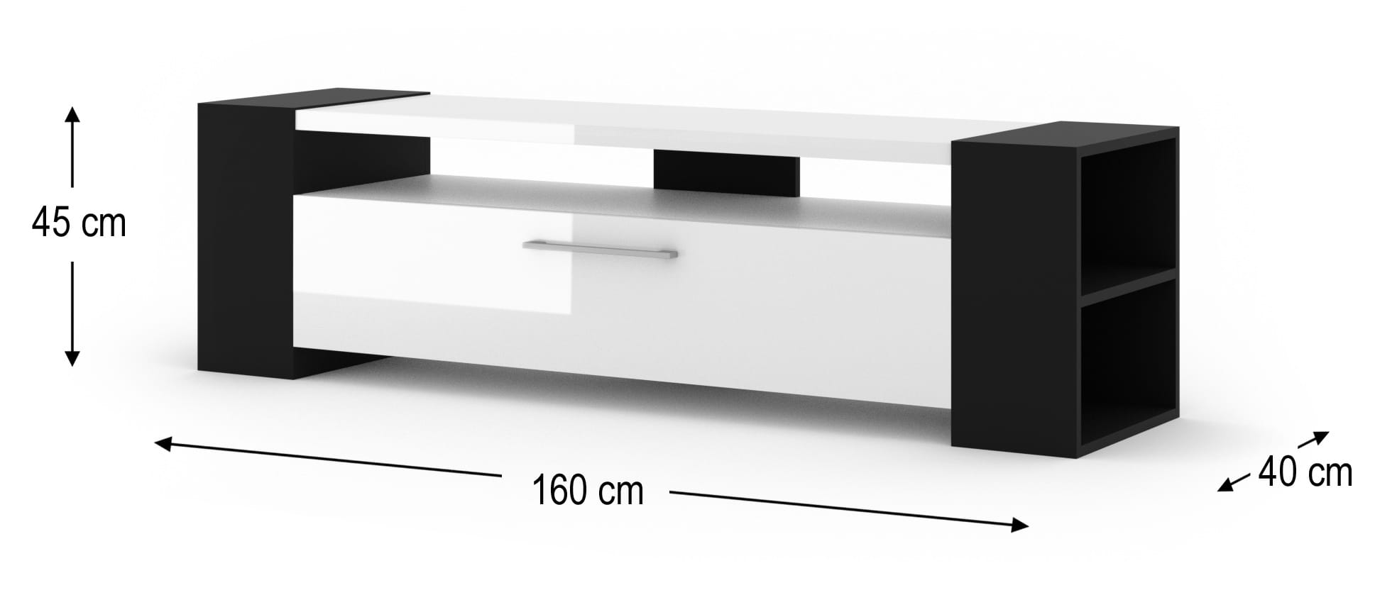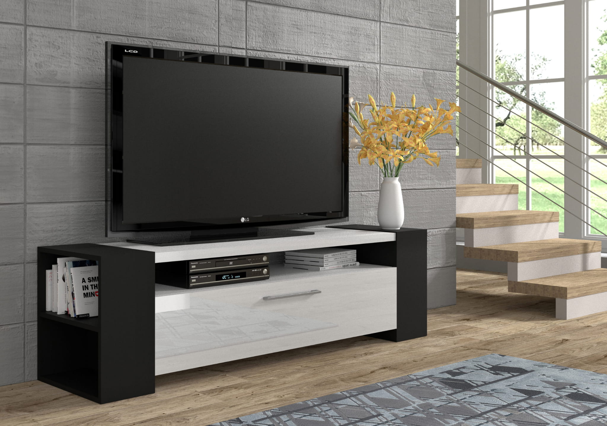 Dzięki dwupoziomowej konstrukcji zapewnia obszerną przestrzeń do przechowywania sprzętu RTV, jak dekodery, konsole, sprzęt grający czy piloty, jednocześnie wpasowując się w nowoczesne aranżacje.